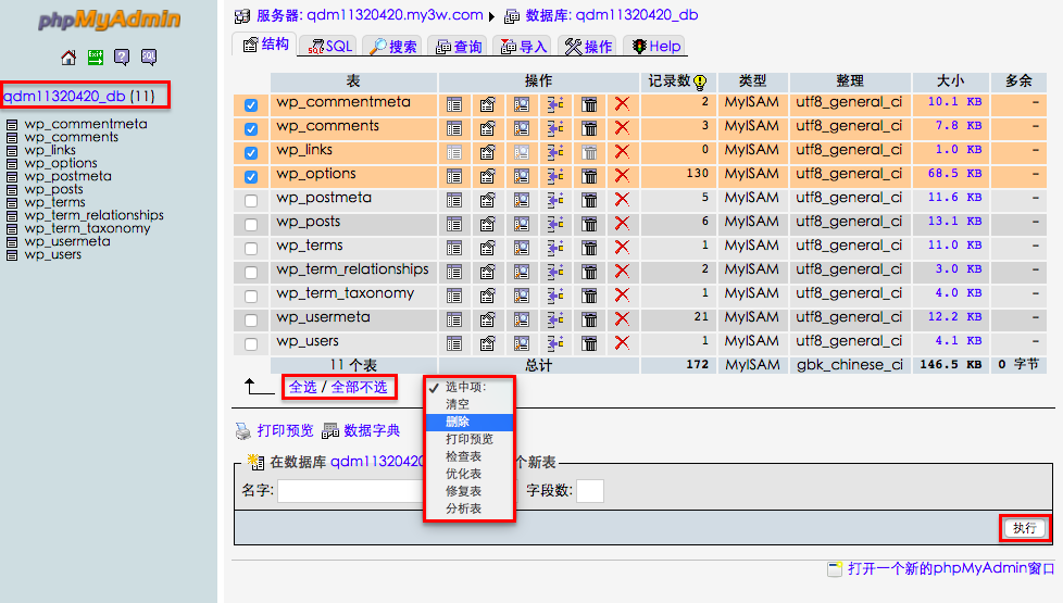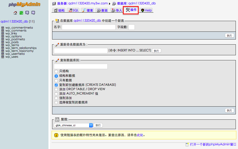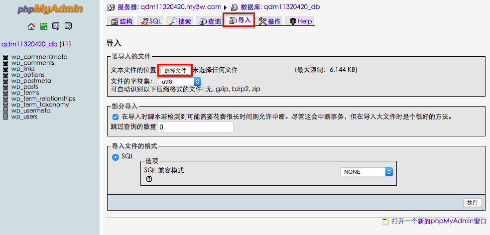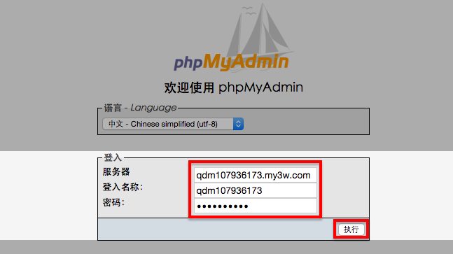 MySQL5.1使用参考手册 使用MySQL5.1数据库的虚拟主机,MySQL数据库相关信息都能够进入主机管理控制台查看、修改及管理。如下图所示: 一、进入主机管理控制台,在“数据库信息”页面,可以进行重置密码、备份、管理的相关操作; (1)、重置密码:系统默认提供的数据库密码是加密的,如果初次使用请先重置数据库管理密码在进行管理,如下图所示: (2)、变更数据库:选择要使用的数据库,再选择点击确定; 特别说明:更换数据库版本后,需重置数据库的密码,否则可能造成数据库连接不成功。更换数据库版本,会清空当前数据库的内容。请确认数据库成功备份后,再执行这项操作。如图所示: (3)、管理:对数据库进行具体管理,点击“管理”将登陆DMS页面,返回旧版就进入phpMyAdmin登陆页面; 登录时请记得输入相应的数据库密码。如下图所示: (4)、备份数据库:数据库备份后都会通过FTP将备份文件上传到指定FTP目录下,windows系统上传目录为根目录,linux上传目录为"/myfolder",如下图所示: 二、phpMyAdmin管理,在“主机管理控制台”的“数据库信息”页面中点击“管理”后,返回旧版phpMyAdmin登陆页面; (1)、登陆phpMyAdmin:输入主机的数据库服务器、数据库用户名及密码,再点击执行,如下图所示: (2)、数据库“导入”功能,也就是数据库的还原功能。当您购买完主机后或者更换主机后,您需要从本地上传您的MySQL数据库信息到数据库服务器上,此时您可以使用这项功能。点击“浏览”选择一个本地的sql文件;文件字符集数据库请根据源数据库的字符集来选择(一般为gbk或utf8),后面选用默认的,点击“执行”,就开始执行还原过程,如下图所示: (3)、数据库“操作”功能,提供添加表、重命名表、复制的功能,如下图所示: (4)、清空或者删除数据库操作,“全选”或“选中指定表”之后,再点击“执行”。就能够清空或删除数据库。如下图所示: 如问题还未解决,请联系售后技术支持。 上一条: 数据库导入的方法介绍 下一条: MySQL数据库的备份操作方法