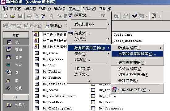 Access数据库的压缩与修复方法介绍 Access数据库长时间使用后很可能出现数据库过大、数据库损坏等现像,微软的Office软件中Access是带有修复和压缩功能的,具体操作包括以下两步: 1、打开您的.mdb数据库,如下图所示: 2、点击上方菜单栏中的工具——》数据库实用工具——》点击压缩和修复数据库就可以了 特别说明:压缩和修复Access数据库操作起来非常容易,在操作前您本地电脑上需要安装Office软件中的Access软件。 如下图所示: 如问题还未解决,请联系售后技术支持。