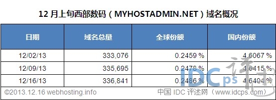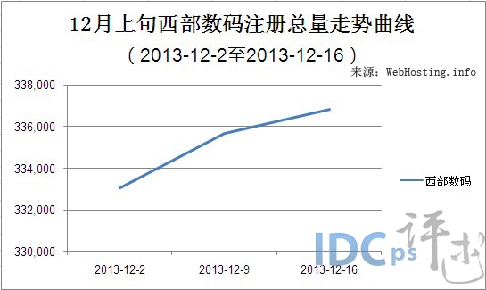 西部数码域名12月上旬注册量动态:12月上旬净增3765个
