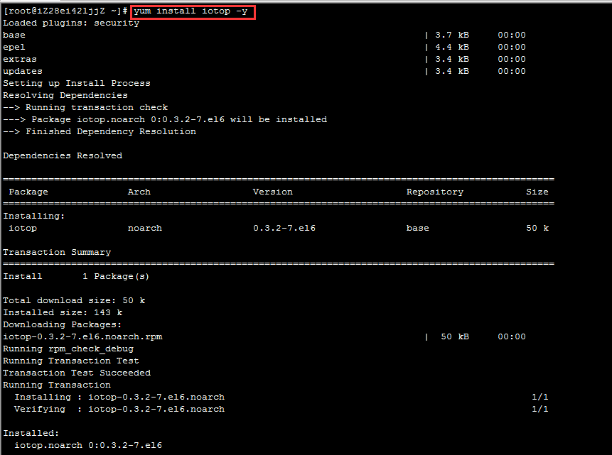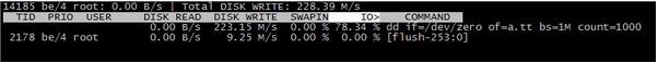 Linux下的IO统计工具如iostat, nmon等大多数是只能统计到每个磁盘的读写情况, 若想知道每个进程是怎样使用IO的就比较麻烦.iotop 是一个用来监视磁盘 I/O 使用状况的 top 类工具。iotop 具有与 top 相似的界面风格,其中包括 PID、用户、I/O、进程等相关信息。 1、iotop命令安装 yum install iotop -y 2、常见的使用方法 1)iotop -o 直接在命令行中输入即可 o键是只显示有IO输出的进程 2)直接输入iotop 直接在命令行中输入 输出如下所示: 通过输出结果,我们可以清楚地知晓是什么程序在读写磁盘,速度以及命令行,pid 等信息。 3)其他参数说明: --version #显示版本号 -a, --accumulated #显示从iotop启动后每个线程完成了的IO总数 -b, --batch #运行在非交互式的模式 -d SEC, --delay=SEC #设置显示的间隔秒数,支持非整数值 -h, --help #显示帮助信息 -k, --kilobytes #以千字节显示 -n NUM, --iter=NUM #在非交互式模式下,设置显示的次数 -o, --only #显示进程或者线程实际上正在做的I/O,而不是全部的,可以随时切换按o -p PID, --pid=PID #只显示指定PID的信息 -P, --processes #只显示进程,一般为显示所有的线程 -t, --time #在每一行前添加一个当前的时间 -u USER, --user=USER #显示指定的用户的进程的信息