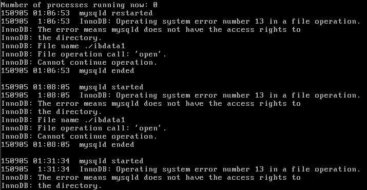 mysql启动时提示报错,如下所示: mysql错误日志提示如下: 这个情况说明文件加载时存在问题,需检查mysql文件的属主信息,rpm安装的路径是/var/lib/mysql 执行ls -l /var/lib/mysql 来查看,结果如下: 可看到权限确实不正确,需执行如下命令修复: chown -R mysql.mysql /var/lib/mysql 执行后可正常启动mysql