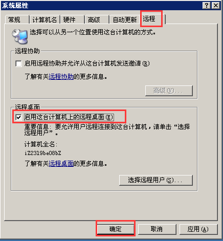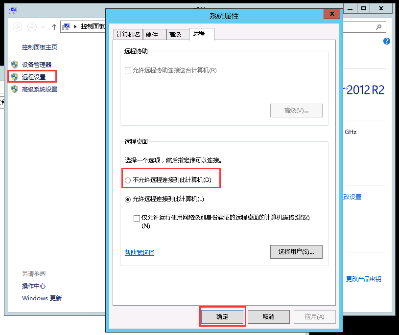 ECS Windows系统临时关闭远程桌面的方法 操作需求:临时关闭Windows服务器的远程桌面服务,需要的时候再开启。 操作方法:Windows 2003/2008/2012的方法不尽相同,以下一一列举。 Windows 2012系统: 登录服务器后打开“文件夹”,然后右键点击“这台电脑”——选择“属性”,如下图: 在打开的页面中选择“远程设置”,然后勾选为“不允许连接到此计算机”,确定即可,如下图: 需要远程桌面登录时,可以通过ECS管理控制台的“更多操作”里的“连接管理终端”连接服务器,然后将远程桌面的选项恢复为允许即可。“连接管理终端”使用方面的帮助,可以参考:【点此查看】 Windows 2008系统: 登录服务器后点击“开始”,右键点击“计算机”——选择“属性”,如下图: 在打开的页面中,选择“远程设置”,然后勾选为“不允许连接到这台计算机”,确定即可,如下图: Windows 2003系统: 登录服务器后点击“开始”,右键点击“我的电脑”——选择“属性”,如下图: 在打开的页面中选择”远程“选项卡,然后取消掉”启用这台计算机上的远程桌面“的勾选,确定即可,如下图: 如问题还未解决,请联系售后技术支持。