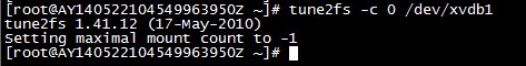 ECS Linux服务器文件系统的自检功能,默认是每隔23次挂载操作或每180天后,会自动检查文件系统。若想要关闭磁盘系统自检,请参考步骤,如下所示: 1、以root用户登陆Linux 2、执行命令:tune2fs -c 0 /dev/磁盘分区 例如:关闭xvdb1的磁盘自检,就是 tune2fs -c 0 /dev/xvdb1 请注意:磁盘检查是Linux保障数据安全的一种策略,如果没有特殊的需求,不建议客户将其关闭。