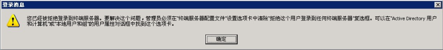 如何解决Administrator被禁止登陆任何终端服务器 问题描述: 用户在使用administrator远程登陆时,出现“您已经被决绝登录到终端服务器,要解决这个问题,管理员必须在“终端服务器配置文件”设置选项卡中清除“拒绝这个用户登录到任何中断服务器”复选框。 如下图所示: 问题分析解决: 出现此提示,是由于administrator在用户属性中的终端服务器配置文件中,勾选了“禁止这个用户登录到任何终端服务器” 通过管理终端或者其它管理员用户登录服务器后,修改administrator的属性就可以了。 首先在运行中输入lusrmgr.msc 打开用户管理。找到administrator,右键单击用户--属性--终端服务器配置文件,去掉“拒绝这个用户登录到任何终端服务器”前的勾即可。 如下图所示: 如问题还未解决,请联系售后技术支持