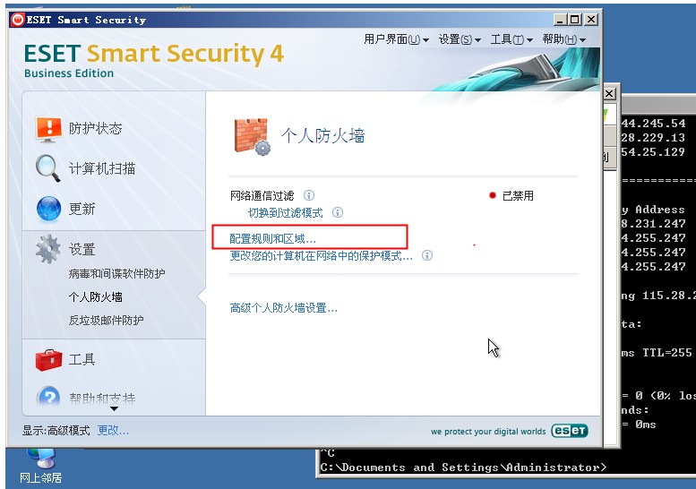 如何解决ECS Windows服务器安装ESET杀毒软件导致入站网络异常 若ECS Windows服务器没有配置IP安全、防火墙和IP筛选,网络出站方向正常,但网络入站方向无法连接,请用户检查是否安装配置了杀毒软件。 这里以ESET杀毒软件为例,ESET杀毒软件默认有防火墙功能,防火墙的默认规则没有开放端口,需要用户自行配置。 在ESET防火墙中将需要访问的端口放行就可以了。用户可以参考下图: 如问题还未解决,请联系售后技术支持