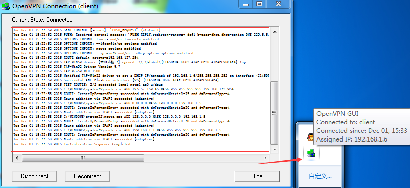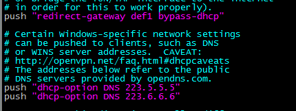 在ECS Centos7上,安装配置OpenVPN。 1.安装openvpn yum install -y openvpn yum install -y easy-rsa 2.配置openvpn 拷贝配置文件 cp /usr/share/doc/openvpn-*/sample/sample-config-files/server.conf /etc/openvpn 编辑配置文件 vim /etc/openvpn/server.conf 主要修改以下几个配置,把前边的分号注释去掉,其中DNS配置项,修改为阿里公共DNS地址。 dh dh2048.pem server 192.168.1.0 255.255.255.0 #vpn的内网地址段 push "redirect-gateway def1 bypass-dhcp" push "dhcp-option DNS 223.5.5.5" push "dhcp-option DNS 223.6.6.6" user nobody group nobody 3.配置证书文件 mkdir -p /etc/openvpn/easy-rsa/keys cp -a /usr/share/easy-rsa/2.0/* /etc/openvpn/easy-rsa/ vi /etc/openvpn/easy-rsa/vars 修改以下配置的内容,自定义设置各项值即可。 export KEY_COUNTRY="CN" export KEY_PROVINCE="CA" export KEY_CITY="Bei Jing" export KEY_ORG="Fort-Funston" export KEY_EMAIL="vpm@host.com" export KEY_OU="test" export KEY_NAME="vpnserver" export KEY_CN="openvpn" 这行配置,前边默认的“#”号注释去掉。 cp /etc/openvpn/easy-rsa/openssl-1.0.0.cnf /etc/openvpn/easy-rsa/openssl.cnf cd /etc/openvpn/easy-rsa source ./vars ./clean-all ./build-ca #执行命令后,按回车键,一直到结束。 ./build-key-server server #按回车键进行,在提示输入密码的地方,设置一个密码,最后输入两次“y”回车 ./build-dh #创建秘钥文件,等待命令执行完。 ls /etc/openvpn/easy-rsa/keys/ #可看到,目录中已经创建好了证书文件。 cd /etc/openvpn/easy-rsa/keys cp dh2048.pem ca.crt server.crt server.key /etc/openvpn cd /etc/openvpn/easy-rsa ./build-key client #创建客户端证书文件,按回车进行,提示输入密码的地方,输入之前设置的证书密码。 ls /etc/openvpn/easy-rsa/keys/ #可看到,生成了客户端的证书文件 4.设置iptables、路由转发。 yum install -y iptables-services systemctl enable iptables systemctl stop firewalld #关闭Centos7默认的 firewall防火墙 systemctl start iptables #启动iptables iptables -F #清空默认的iptables规则 设置iptables NAT转发规则 iptables -t nat -A POSTROUTING -s 192.168.1.0/24 -j MASQUERADE service iptables save #保存防火墙规则 echo 1 > /proc/sys/net/ipv4/ip_forward #临时开启路由转发 vi /etc/sysctl.conf #编辑配置文件,添加以下配置,设置永久路由转发 net.ipv4.ip_forward = 1 5.启动openvpn systemctl -f enable openvpn@server.service #设置启动文件 systemctl start openvpn@server.service #启动openvpn的命令 6.服务器安装配置好openvpn后,在本地Windows电脑上,通过openvpn客户端连接vpn。 把服务器上的三个客户端证书文件,下载到本地电脑配置vpn客户端。 /etc/openvpn/easy-rsa/keys/ca.crt /etc/openvpn/easy-rsa/keys/client.crt /etc/openvpn/easy-rsa/keys/client.key 安装好openvpn客户端软件后,把证书文件,存放到openvpn安装目录的config文件夹下。 从sample-config文件夹下,拷贝客户端的配置文件client.ovpn 到config文件夹下。 编辑config文件夹下的配置文件client.ovpn,修改remote my-server-1 1194 这行配置,指定openvpn服务器的ip地址。 配置好后,点击openvpn的客户端图标,连接vpn。 openvpn的图标显示绿色后,表示已经连接上vpn了。 然后在本地电脑进行测试,连接vpn后,可访问ECS服务器的内网,通过ECS服务器连接公网。 本地电脑用浏览器上网,显示的ECS服务器的公网ip。