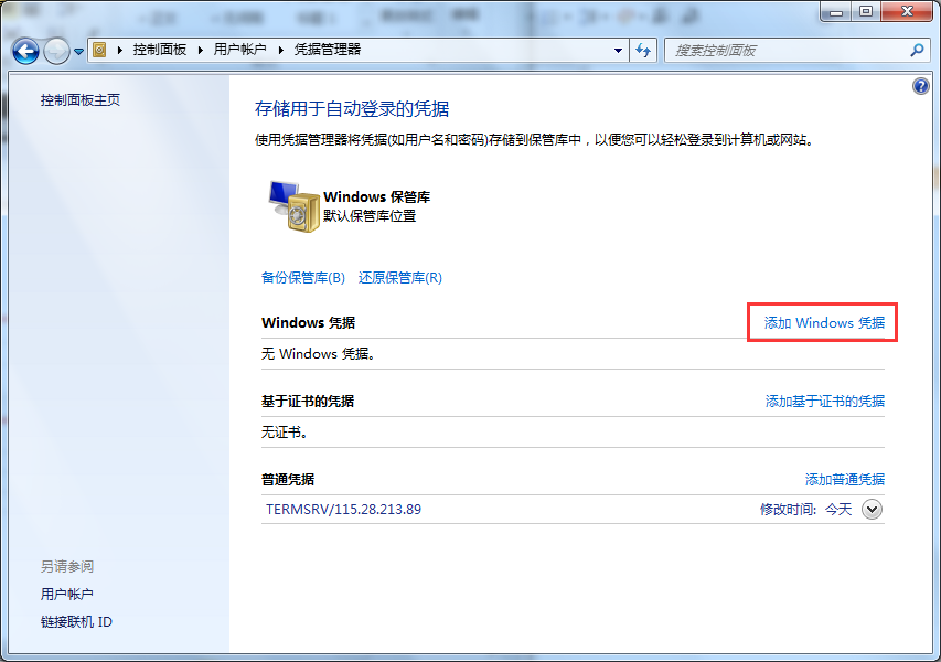 如何解决ECS 本地Windows系统远程登录提示“凭据无法工作” 本地电脑远程登录Windows 2008服务器遇到登录失败的情况,密码是对的,但是却登录不上,报错现象和密码不对还是一样。这可能是由于登录其他Windows服务器,本地电脑的凭据窜台导致的,可以尝试按照下面的方法进行设置。如下图所示: 1、 首先在本地电脑上运行gpedit.msc打开组策略编辑器,然后找到计算机配置->管理模板->系统->凭据分配->允许分配保存的凭据用于仅NTLM服务器身份验证->选择“已启用”,如下图所示: 2、然后进入“控制面板”->“用户账户”->“凭据管理器”->“添加Windows凭据”->输入Windows2008 Server的ip地址、用户、密码。再次测试登录远程桌面就可以了,如下图所示: 如问题还未解决,请联系售后技术支持。
