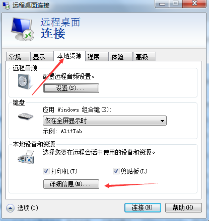 设置远程桌面登录服务器后操作本地电脑磁盘的具体方法 Windows系统远程桌面连接,用户可以在服务器上可以查看本地电脑的磁盘文件。操作步骤如下所示: 1、首先在本地电脑上打开远程桌面连接,选择【选项】。如下图所示: 2、打开【选项】后,选择【本地资源】,进入【详细信息】。如下图所示: 3、然后在【驱动器】中,选择远程桌面连接服务器时,要显示的本地磁盘,最后【确定】进行远程桌面连接就可以了,如下图所示: