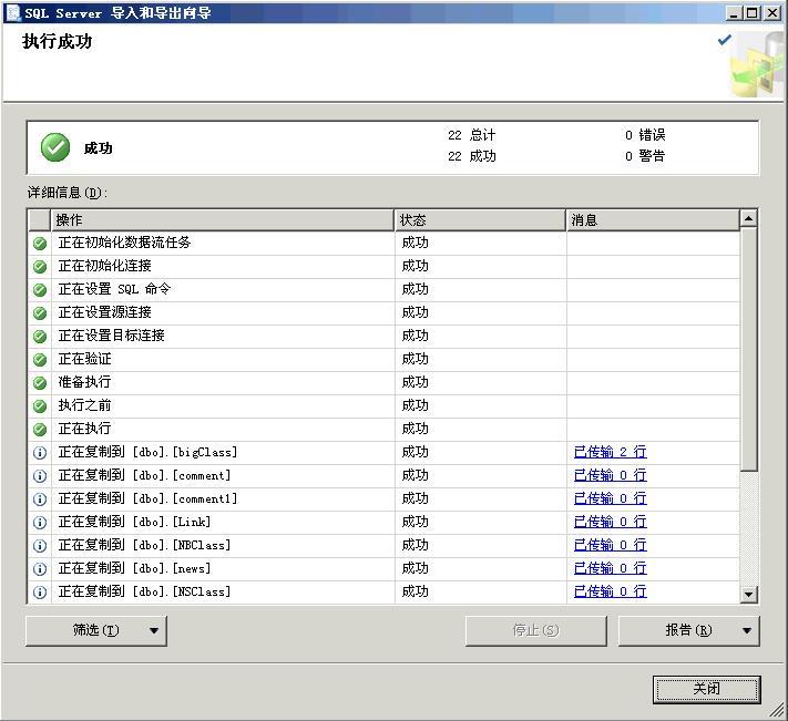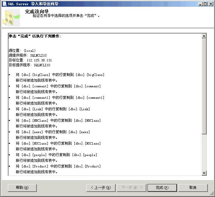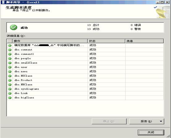 MSSQL2008数据库使用介绍 万网主机产品提供的SqlServer版本为2008,您需要按照下面的步骤连接和管理您的数据库的数据: 1、首先安装SqlServer2008客户端 2、然后导出本地数据库出数据库的架构 3、再连接到万网数据库,并导入数据库架构 4、将本地数据库表中的数据导入到万网的数据库 下面依次对上述步骤进行说明: 一、您需要在本地电脑按照以下步骤安装SqlServer2008客户端,连接并管理您的数据库。 MSSQL2008数据库客户端升级使用文档 二、导出本地数据库出数据库的架构 特别说明:架构主要指数据库的表结构,索引等信息 步骤说明: (1)、打开本地计算机上的 SQL Server Management Studio 客户端软件,如下图所示: (2)、登陆本机数据库控制端,身份验证方式使用“SQL Server身份验证”,服务器地址为您本地的数据库的地址,登录名和密码为您本地数据库的账号和密码,如下图所示: (3)、选择生成SQL脚本,如下图所示: (4)、选中需要导出脚本的库名,如下图所示: (5)、需要选择兼容sql2005的版本的脚本,如下图所示: (6)、修改sql脚本的保存路径,如下图所示: (7)、查看生产脚本生成的选项,如下图所示: (8)、成功生成了sql脚本,如下图所示: (9)、等待脚本生成完毕,进入存放目录用记事本打开脚本文件,修改库名为万网提供的数据库名,并确保您的脚本中所有者是 DBO,否则请替换成 DBO,如下图所示: 三、连接到万网数据库,并导入数据库架构 (1)、连接到万网提供的目标数据库服务器:如何查看数据库信息。如下图所示: (2)、并点击新建查询,拷贝您记事本中的 SQL 脚本代码到上图显示的查询分析器中,再点击分析脚本,如果没有语法错误,就点击执行脚本,直到执行完毕。到此,您的数据库架构已经完整的导入到万网的数据库服务器。如下图所示: 四、将本地数据库表中的数据导入到万网的数据库,参考步骤如下所示: (1)、登陆您本地的数据库,地址为local,登陆名和密码为您本次数据库的密码,如下图所示: (2)、点击您本地计算机上的数据库右键-任务-导出数据,如下图所示: (3)、选择目标数据库,如下添加万网提供给您的数据库信息(服务器地址,用户名,密码,数据库),如下图所示: (4)、点击下一步,如下图所示: (5)、点击下一步,选中所有表,并确保“目标”中是 DBO 的所有者,如下图所示: (6)、点击下一步,如下图所示: (7)、点击下一步,直到执行完毕,如下图所示: (8)、成功导入数据,到此您的库已经完整的导入到万网提供的数据库服务器中,您可以用程序进行调用读取了。如下图所示: 如问题还未解决,请联系售后技术支持。 上一条: 无上一篇 下一条: MSSQL2008导入数据的参考教程
