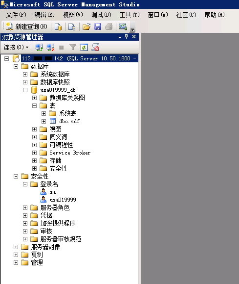 关于MSSQL2008数据库客户端升级使用的文档相关 用户必须安装Microsoft SQL Server 2008 Management Studio Express才可以实现对数据库的管理。因为,数据库从MSSqlServer2000或MSSqlServer2005升级到MSSqlServer2008后,原来版本的客户端管理工具,已经不能适用于新的SqlServer2008数据库。 一、安装Microsoft SQL Server 2008 Management Studio Express的参考步骤 步骤 1:下载并安装 Microsoft .Net Framework 3.5 SP1。下载地址: http://go.microsoft.com/fwlink/?LinkId=120550 步骤 2:下载并安装 Windows Installer 4.5。下载地址: http://go.microsoft.com/fwlink/?LinkId=123422 步骤 3:下载并安装 Windows PowerShell 1.0。下载地址: http://go.microsoft.com/fwlink/?LinkId=120552 步骤 4:下载并安装 SQL Server 2008 Management Studio Express。下载地址: http://www.microsoft.com/downloads/details.aspx?FamilyID=08e52ac2-1d62-45f6-9a4a-4b76a8564a2b&displayLang=zh-cn 特别说明:前三个步骤是安装SQL Server 2008 Management Studio Express所需组件,如果您的计算机已经安装过这些组件请忽略此步骤 二、管理远程数据库的方法 (1)、首先启动“SQL Server Management Studio”,再打开“文件”,选择点击“连接对象资源管理器”。如下图所示: (2)、服务器类型选择“数据库引擎”,服务器名称填写数据库所在服务器的IP地址,身份验证选择“SQL Server身份验证”,登录名填写您的数据库登录名称,然后填写相应的密码,最后点击“连接”按钮就可以连上您的数据库了。如下图所示: (3).、管理方法类似SQLServer2005。如下图所示: 如问题还未解决,请联系售后技术支持。 上一条: MSSQL2008导入数据的参考教程