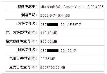为什么Mssql数据库企业管理器和主机管理控制台显示已用空间大小不同 一、为什么数据库已用空间显示不一致 (1)、登录主机管理控制台,再点击Mssql数据库进入后,查看数据库属性,显示数据库已用空间,与您本地通过企业管理器连接上Mssql数据库,显示的数据库已用空间大小不一致。 (2)、原因是主机管理控制台所显示的数据库已用空间是数据库文件实际使用空间的大小,不包括日志文件空间的大小,而登录到企业管理器看见的数据库大小是包括日志文件的大小。 (3)、Mssql数据库实际使用空间以您在主机管理控制台中看到的大小为主,万网虚拟主机收费是按实际使用空间收费,所以只统计数据库文件所占用空间。 二、举例阐述具体情况 (1)、登录到企业管理器看见的数据库大小为 “218.94MB”,是因为这个值包括日志文件的大小。如下图所示: (2)、在主机管理控制台中看到的“已用数据库空间(M): 119.19 MB ”指的是实际使用数据库空间的大小,也就是数据库文件dsc*****_db_Data.mdf的大小并没有包括日志文件的大小。使用的日志文件大小为“已用日志空间(M): 99.75 MB ”。 (两者相加119.19+99.75=218.94MB) 如下图所示: 如问题还未解决,请联系售后技术支持。 下一条: 如何解决mssql企业管理器不能正常打开