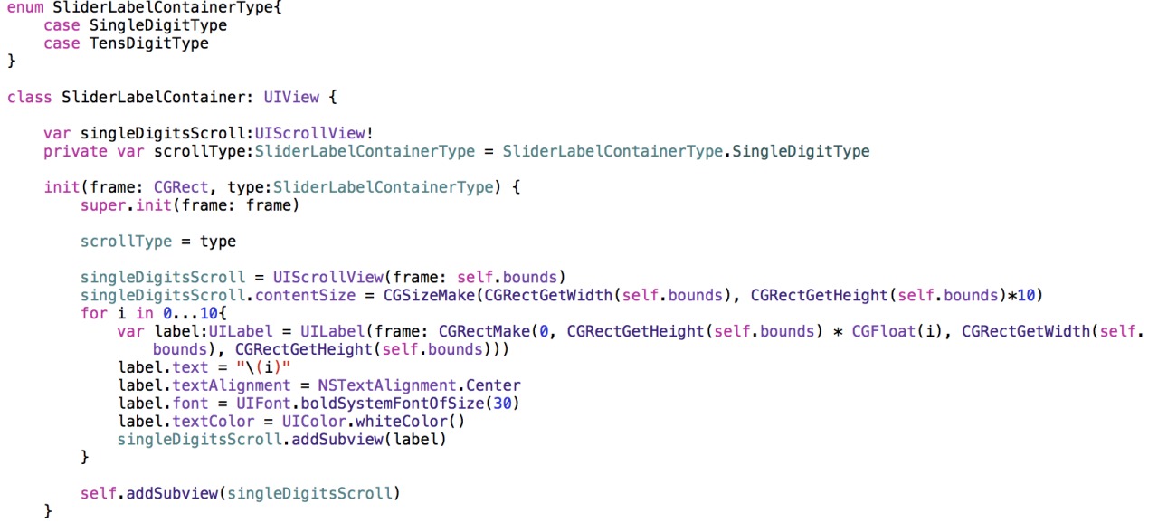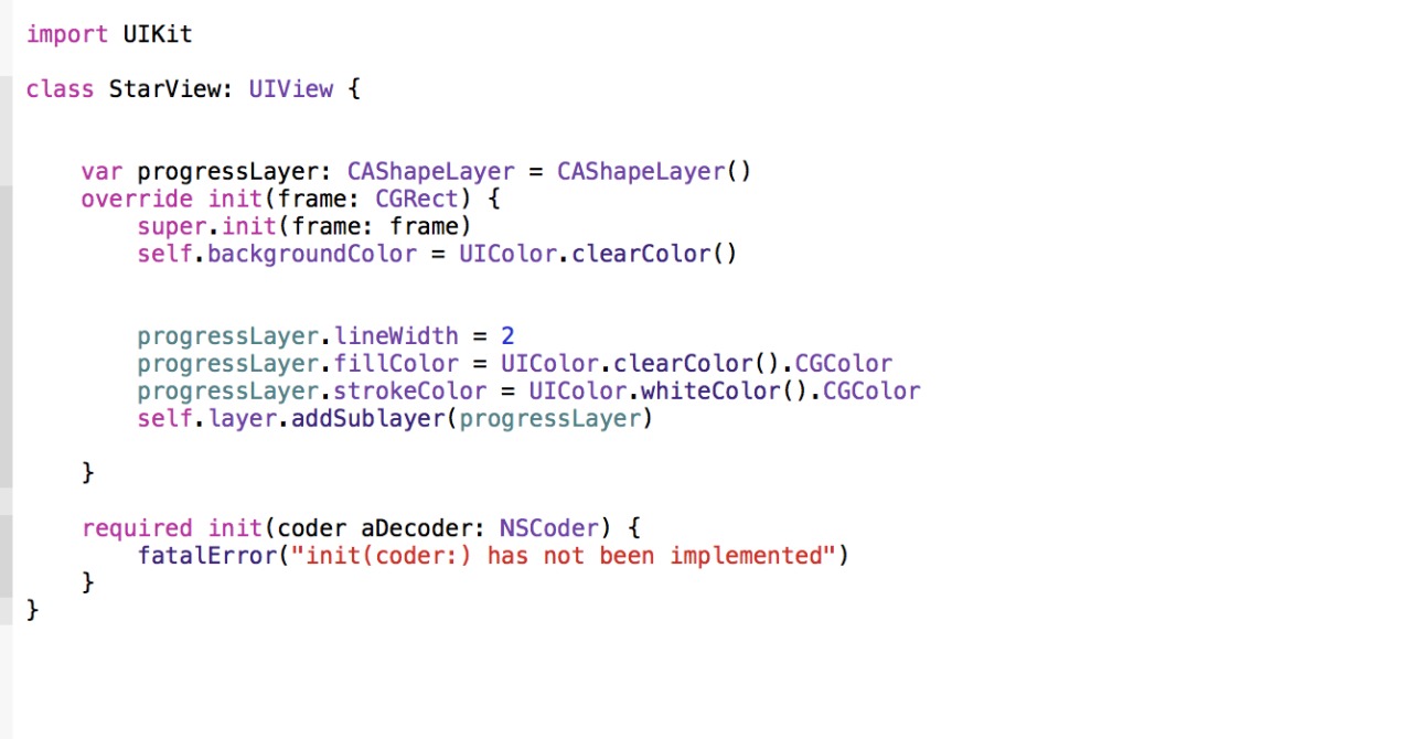 从第三篇攻略开始,我们会把注意力集中在如何写一个iOS app上。 看第一张图,如图1所示: 图1所示的是我们的app大概样子。 关注我微博的人应该知道之前我做了一个card效果,主要也是为了写这个界面,由于card那个效果应该是整个页面最复杂的了。所以我们今天先讲一个简单,就是图1显示PASSES的那个圆形view。 下面是动画加载的大概顺序: 1.首先是一个圆形的环的形成动画。 2.然后是数字的滚动效果。 3.细看的话,数字滚动的速度是不同的,十位数滚动的稍慢。个位数略快一些。那么首先脑子里的想法就是这肯定不能用一个label来显示,用两个label来分别显示个位和十位比较好做动画。 因此,此篇攻略我们先来做最简单的圆环形成的动画。 那很简单,用CAShapelayer来做strokeEnd动画就行了。 我们新建一个类,继承自UIView,然后改名叫StartView.如图2所示: 然后呢,给这个类添加一个属性。 var progressLayer: CAShapeLayer = CAShapeLayer() 然后重写我们的init方法。 加入如图3所示的代码: 图3 现在我们的StarView类是图4这样的。 然后让我们先看看效果,在Viewcontroller里添加一个我们刚刚写的StarView,运行模拟器。结果已经有一个圆环了。 刚才我说过,要做出画出圆环的那种动画要使用一个叫做strokeEnd的动画。为什么呢? 在我早期的一篇blog中讲过,CABasicAnimation的keypath来源于何处。 其实keypath就是来源于CALayer的所有属性,也就是说,layer的所有属性都能放到keypath里做动画,而CAShapeLayer有一个叫做strokeEnd的属性,专门是用来检测CAShapeLayer的path属性是否被赋值,如果赋值的话就画出path的路径。so,我们就可以用这个strokeEnd属性做一些绘画的动画。 直接看代码。如图5所示的代码: 图5 这里我定义了一个函数,专门用来执行这个画圆环的动画,然后把动画时长设置为0.5. 然后我们来运行一下。如图6所示: 确实是执行了画圆环的操作,但是问题来了。绘画的起点并不正确,起点是在三点钟方向,而我们的原型是需要在12点钟方向开始画。 出现的问题就在progressLayer.path = UIBezierPath(ovalInRect: self.bounds).CGPath 这句话上。 由于这个函数就是默认创建一个起点在三点钟方向的oval(圆形),所以我们通过这个函数创建的圆环是没有办法指定起点的。 现在我们有两个解决方案,第一个是让我们的layer逆时针方向做一个90度的transform,那么我们的子layer也逆时针旋转了九十度,刚好从3点钟方向旋转到了12点钟方向。 可是这种解决方案并不合适。因为会留下很多后遗症。 比如说,你如果后期需要在cashapelayer加一些东西的话,所有的子layer全部会旋转。 所以我们需要改变progressLayer的path的创建方式。如图7所示: 图7 我们用画弧线的方法画一个圆,因为这种方法可以指定startAngle和endAngle。运行一下,如图8所示: 从图8的结果上看,已经能正确显示了。 接下来是我们的滚动Label。 这种能上下滚动的label最好的方法就是创建一个scrollView,然后在scrollview中添加十个label,label的内容就是数字0-10. ok,我们新建一个类。 然后加入如图9所示的代码。 新建这个enum的原因就是我们的十位数和个位数弹跳的速率不同,所以我们在初始化的时候加入了一个type,用来区别创建的是十位数label还是个位数label。 然后就是创建了一个scrollview,在竖直的方向添加了十个label。 并且设置了一下每个label的字体,颜色等等属性。 然后创建一个开始动画的方法。 然后我们运行一下。如图10所示: 好的,label可以滚动了。那么其实问题也来了。 这两个scroll的滚动速度是一样的,而我们的需求是十位数的速度要慢一点。 熟悉各个不同的模块的人有各自的熟悉领域,比如可能熟悉scrollView的同学会知道scrollView有一个属性叫做decelerationRate 可以改变滑动速率,熟悉mssql的了解mssql的内容。但是这个属性有两个问题,1是只有在pageEnable开启的情况下才能生效,2是无法很细致的改动。 所以我们用另一个方法,用UIView的animation方法。 代码如下,如图11所示: 图11 相信不用我做过多解释大家也能看懂。就是更改scrollView的contentoffset。 好了,核心组件已经完成。那么我们把它组装起来。 最后运行效果如图12所示。 最后项目地址在这:https://github.com/zangqilong198812/HotGirls 之后我会出一些mssql的博客,敬请关注。