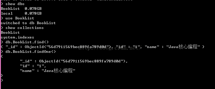 MongoDB学习(2):shell的基本操作 一,首先创建一个数据库 使用use关键字,格式为 use [databasename] 当你这样创建一个数据库时,这个数据库只是创建于内存中,只有你对数据库执行一些操作后,数据库才真正的创建,否则如果直接关掉mongodb,数据库在内存中会被删除掉。 二,查看所有数据库 命令为 show dbs Mysql中的命令为show databases,两者有所不同。 三,查询数据库中指定文档的数据 命令为 查询所有数据:db.[documentname].find() 查询文档的第一条数据:db.[documentname].findOne() 以上指令操作如下: 四,查看数据库中的现有的文档 mongodb存储数据与MySQL不同,mongodb不是以表(table)的形式存储,mongodb的存储是以collection的形式,有点像数据结构中的链表, show collections MySQL的命令为show tables。 五,删除文档中的数据 命令为 db.[documentname].remove({...}) 括号中填写的是查询条件,比如db.BookList.remove({name:"Java核心编程"}),这样就把BookList中的name为“Java核心编程”给删除掉了。 上一条: Scrapy+Flask+Mongodb+Swift开发攻略三 下一条: MongoDB学习(1):安装时出现The default storage engine 'wiredTiger' is not available问题
