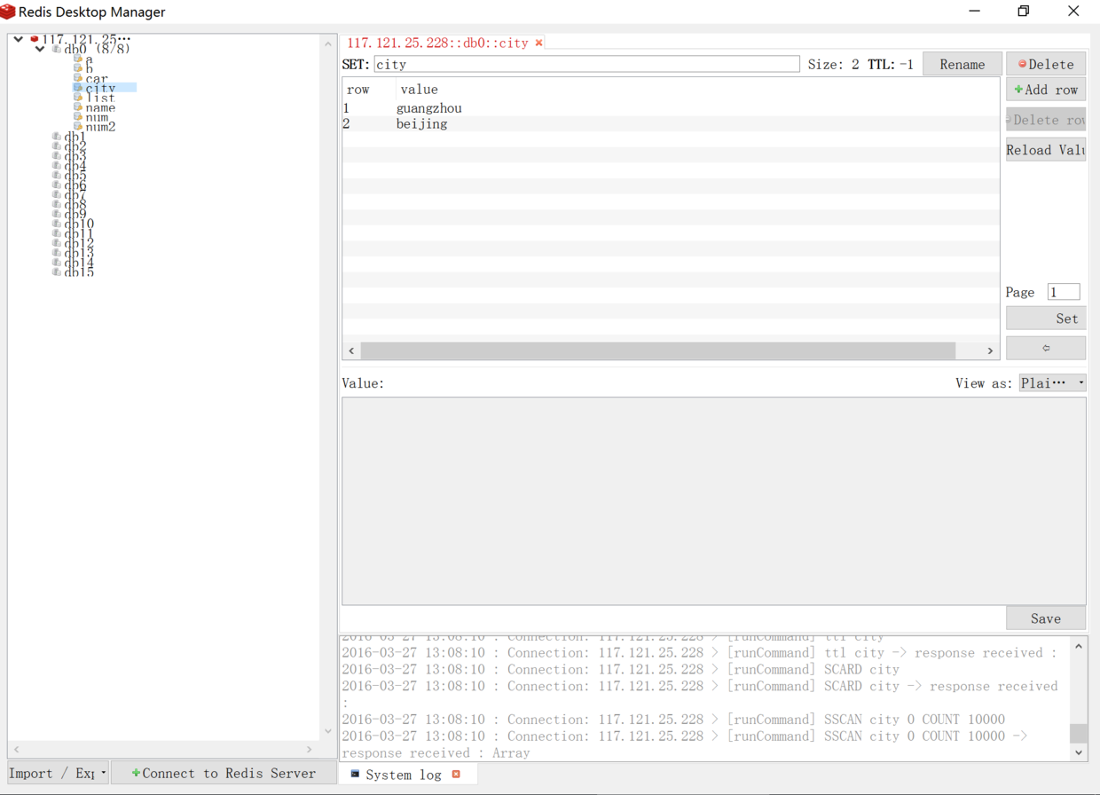nodejs+redis应用说明 1.Redis是什么 Redis是一个基于BSD开源的使用ANSI C语言编写、支持网络、可基于内存也可持久化的日志型、Key-Value数据库,并提供多种语言的API. 1.Redis存储的是一个个的键值对 2.Redis的五种数据类型(字符串,哈希,链表,无序集合,有序集合) 3.通常用Redis做缓存数据库 2.Redis安装 Redis官方是不支持windows安装的,所以我们这里以ubuntu为例来说明 wget http://download.redis.io/redis-stable.tar.gz tar xzf redis-stable.tar.gz cd redis-stable make 3.Redis运行 Redis服务器默认使用6379端口 resis-server 也可以自己指定端口,如下所示: redis-server --port 6380 客户端通过 redis-cli 来连接数据库服务器 也可以指定服务器地址和端口 redis-cli -h 127.0.0.1 -p 6380 测试客户端和服务器是否连通 PING 返回PONG说明连通了的 4.Redis的基本使用 4.1 字符串 set key value 设置key的value get key 得到key的value incr key key如果是整型自增1 keys * 得到所有key 4.2 哈希 hset key filed value 设置key对象的field属性的value hget key filed 得到key对象的field属性的value hgetall key 得到key对象的所有的属性和值 4.3 集合类型 适合存储文章的标签,因为是唯一的 sadd key member [member ...] 向集合key中添加元素,如果元素已经存在则忽略 srem key member [member ...] 从集合key中删除元素 smembers key 返回集合key中所有的元素 sinter key [key ...] 多个集合执行交集运算 sdiff key [key ...] 多个集合执行差集运算 sunion key [key ...] 多个集合执行并集运算 4.4 链表 适合存储社交网站的新鲜事 lpush key value [value ...] 向链表key左边添加元素 rpush key value [value...] 向链表key右边添加元素 lpop key 移除key链表左边第一个元素 rpop key 移除key链表右边第一元素 lrange key start stop 获取链表中某一段,包含最大值,-1表示最后一个元素 4.5 有序集合 适用于通过文章访问量排序 zadd key score member [score member ...] 向有序集合key中加入一个或多个元素和分数,如果元素已经存在,则替换分数 zrem key member [member ...] 删除集合中一个或多个元素 zrange key start stop [withscores] 按元素分数从小到大顺序返回元素,如需获得对应元素的分数,在尾部加上withscores zrevrange key start stop [withscores] 按元素分数从大到小顺序返回元素 5.Redis 数据库桌面管理工具 下载地址:http://redisdesktop.com/download 可以很方便的管理Redis数据库里的键值对 6.Redis 数据库其他说明 Redis默认支持16个数据库,编号0~15,每个数据库是独立的不能相互访问,可以通过 SELECT 数据库编号 来更换数据库 Redis不支持自定义数据库名字 Redis不支持每个数据库设置不同的密码 我们可以通过配置参数database修改支持的数据库个数,当选择的数据库编号超过最大数据库编号,自动默认使用最大数据库编号的数据库 清空当前数据库的所有内容,如下所示: flushdb 清空所有数据库的所有内容,如下所示: flushall 随机返回当前数据库的一个键 randomkey 返回给定哈希表中所有键的值 hvals key 删除一个或多个key del key 如果需要将redis用作缓存,可以设置生存时间,这样就不会持久化存储 设置某个键的生存时间 1.(以秒为单位) expire key time 2.(以毫秒为单位) pexpire key time 以秒为单位返回给定key的剩余生存时间,没有设置生存时间则返回-1 tll key 下面我们来看看怎么样在nodejs中使用redis 1.安装redis模块 npm install redis 然后通过redis.createClient(port,host,options)来连接redis服务器 var redis = require("redis"), client = redis.createClient(6380,"117.121.25.228",{}); exports.throw = function(bottle,callback){ bottle.time = bottle.time || Date.now(); var bottleId = Math.random().toString(16); var type = {male:0,female:1}; console.log(type[bottle.type]); /*client.SELECT选择数据库编号*/ client.SELECT(type[bottle.type],function(){ /*client.HMSET 保存哈希键值*/ client.HMSET(bottleId,bottle,function(err,result){ if(err){ return callback({code:0,msg:"过会儿再来试试吧!"}); } callback({code:1,msg:result}); /*设置过期时间为1天*/ client.EXPIRE(bottleId,86400); }); }); } exports.pick = function(info,callback){ var type = {all:Math.round(Math.random()),male:0,female:1}; info.type = info.type || 'all'; client.SELECT(type[info.type],function(){ /*随机返回当前数据库的一个键*/ client.RANDOMKEY(function(err,bottleId){ if(!bottleId){ return callback({code:0,msg:"大海空空如也..."}); } /*根据key返回哈希对象*/ client.HGETALL(bottleId,function(err,bottle){ if(err){ return callback({code:0,msg:"漂流瓶破损了..."}); } callback({code:1,msg:bottle}); /*根据key删除键值*/ client.DEL(bottleId); }); }); }); }