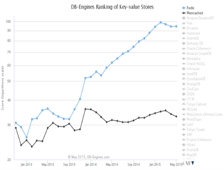 Redis的特性 在这篇文章中,我们将要谈论 Redis(REmote DIctionary Server)。Redis是一个开源的、内存式的、键值存储数据库。它也被称为作为键值存储的字典服务器,这些键值不仅可以是字符串,还可以是hashes(哈希类型)、lists(列表)、sets(集合) 与sorted sets(有序集合)。 Redis与Memcached外形上非常相似,但它们之间也有一些区别,如下图所示: 特性细节 内存式: Redis将键值存储在主存中,用于快速地读写访问。 复制: Redis支持主从复制。数据读取在slave完成,而数据写入在 master 完成。复制提供可伸缩性和可用性。任何一个slave宕机,其他的slave还可以提供数据访问。 虚拟内存: Redis使用RAM作为内存式存储。但是,在内存不足的情况下,它使用虚拟内存来保存数据。 数据结构: Redis不仅存储字符串,还支持列表,集合,哈希和有序集合。 数据持久性: Redis将内存中的数据定期保存到文件系统中。当Redis节点故障时,数据可以从Redis数据文件恢复出来。 发布/订阅模型: Redis支持创建发布和订阅通道,这样Redis客户端可以订阅任意的通道来进行数据消费,并且任何已订阅该通道的客户端可以发布数据。 Redis有丰富的SDK支持。 有很多高流量网站已经使用了Redis,下面给出了其中一些。 1、Craigslist 2、Stack Overflow 3、Plugin support for Magento 4、Rackspace 5、GitHub Redis多年来一直保持着增长趋势。来自 DB-Engines对Redis和Memcached的统计数据如下表所示: 下一条: SSDB:Redis 的竞争对手