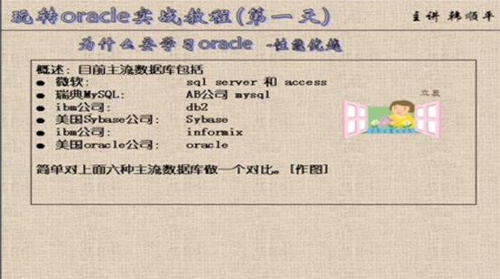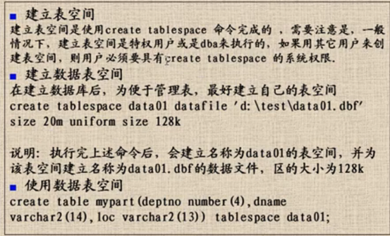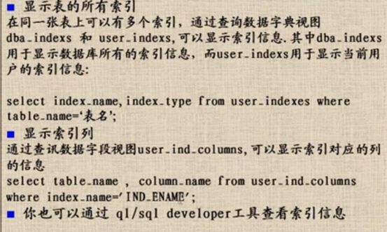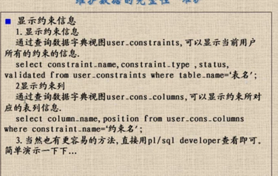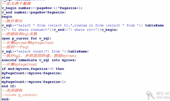 35 表空间脱联机 36 查看表所在的表空间 37 创建使用表空间 38 磁盘损坏移动表空间和数据 磁盘损坏移动表空间和数据2 39 控制表空间的读写 40 扩展表空间 41 删除表空间 42 查询表空间信息 43 五种约束 44 建表约束 45 增加表中列的约束 46 表级定义 47 列列级定义 48 删除主键约束 49 表的完整性:维护表的完整性 维护表的完整性2 50 查看索引信息 51 建立索引 52 系统权限 系统权限回收 对象权限授权 回收对象权限 53 角色相关操作 54 创建存储过程 55 plsql包的输出 56 块的相关介绍:带有变量的块 块的异常处理 57 存储过程相关介绍:java调用存储过程 57 存储过程之修改 58 函数相关介绍:函数的调用 函数使用例子 59 包的相关介绍:包的使用实例 包的调用 创建包体 60 变量相关介绍:变量的另类定义 变量在块中使用 定义变量的实例 变量表实例 复合变量 61 记录实例 62 游标实例 63 goto语句 64 进阶存储过程实例 65 循环2 循环实例 66 插入存储过程 创建输入与输出的存储过程 67 输入输出java调用 68 游标相关介绍:游标的java调用 游标数据的java调用 69 Oracle事务分页操作:分页的基础sq select * from (select a.*,rownum rn from (select * from emp) a where rownum<=10) where rownum>=6 select * from (select 别表.*,rownum rn from (select * from 表) 别表 where rownum<=截取前n条) where rownum>=筛选条件 所有分页查询变化在于如下内表的变化 select * from 表 分页sql语句2 分页包定义游标 分页源sql1 分页源sql2 分页在java的使用1 分页在java的使用2 70 异常相关介绍:异常 异常case_no_found 异常输入数据格式错误 异常游标没打开 异常之游标打开异常 自定义异常处理 71 视图相关介绍:视图 72 ORA-00054悲观锁的Kill 73 sql语句编写规范