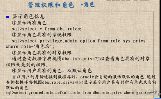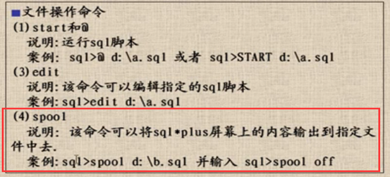 Oracle常用70则脚本知识 摘要: 日常使用oracle数据库过程中,常用脚本命令莫不是用户和密码、表空间、多表联合、执行语句等常规操作。另外表的导入导出也很常用,这些脚步命令之前都做有总结,今统一整理出最为常用的语句,使用方便而已。其中文档是笔者数年整理所得。 1 数据库基本介绍 2 数据库使用的注意事项 3 数据库生成的默认用户 4 修改用户密码 5 Spool截取屏幕内容 6 SQl语句参数值设置 7 创建用户与密码 8 删除用户以及其用户下对象 9 查看表结构 10 oracle中在已有的表中增加或删除一列 alert table 表名 add column 列名 alter table 表名 drop column 列名 eg: alter table TPointManage add AddPointsReason number(8) alter table textattrdetail drop column AddPointsReason 11授权部分表被查看 12 回收授权 13 允许授权的对象继续授权 14 账户锁定 15 解锁账户 16 要求用户定期修改密码 17 存放视频声音等文件类型 18 表的相关介绍 19 修改表 20 修改默认日期格式 21 表自身复制数据 22 内置函数之空值替换 23 合并查询去除重复行 24 Java如何使用oracle数据库 25 关于事务的相关介绍:手动提交事务,错误回滚 26 同时修改两张表的部分数据 27 设置事务不能默认提交 28 设置只读事务 29 字符函数 30 sysdba与sysoper区别 31 导出表结构 32 直接导出 33 查看oracle预定义角色 34 基本数据字典知识:数据字典 数据字典2 数据字典3