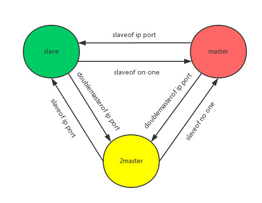 触发写入slave实例事件,进行异步传播;如果此刻正在进行数据同步操作则将命令写入缓冲区,待同步操作完成后再触发向slave实例写入事件。 3.数据丢失 其实redis主从模式并不能保证数据的100%完整,在网络故障、主库宕机这些情况下,提升slave为master时可能会丢失部分数据,如下面的图2所示,如果在某个时刻master的数据还未完全传播给slave时,master宕机等情况发生并将slave提升为master,这时原来master未传播的一部分数据将丢失。 图2 四、双主复制设计 1.前提假设 目前我们由于时间精力的关系在进行双主设计时结合如下所示的实际项目需求进行了一些设计折衷,后续我们会继续完善相关设计。 上层保证某个时间点只有一个master在写 故障时允许丢失少量数据 2.总体设计 双主模块为了避免额外维护成本会完全在redis内部实现,双主两个实例各自创建一个socket进行彼此通信;加入双主复制后不会影响原有的主从复制模式,但如图3下图所示,主从复制实例可以通过我们新增的doublemasterof命令转化为双主复制,双主复制实例也可以通过原有的slaveof命令转换为主从复制实例。 图3 3.同步策略 redis双主实例网络故障恢复或重启等情况下会进行重新连接以同步彼此数据,主从模式下同步策略很简单,只需要从库同步主库数据即可,而双主模式下我们必须根据一定的策略来选出一个实例作为数据同步的对象,我们考虑到两种具体同步策略: