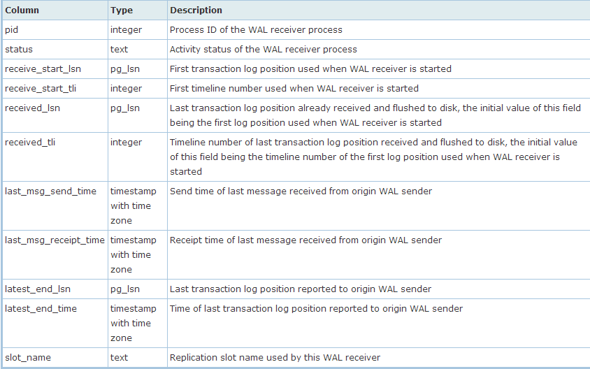 PostgreSQL :wal receiver 统计信息 patch