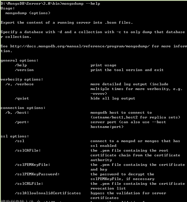 一、mongodump mongodump是一种能够在运行时备份的方法,mongodump对运行的MongoDB做查询,然后将所查到的文档写入磁盘。由于mongodump是区别于MongoDB的客户端,因此在处理其他请求时也没有问题。 但mongodump采用的是普通的查询机制,所以产生的备份不一定是服务器数据的实时快照。 下面让我们来看如何使用mongodump来备份数据库。 首先启动mongodump,如图1所示: 图1 效果如图2所示: 图2