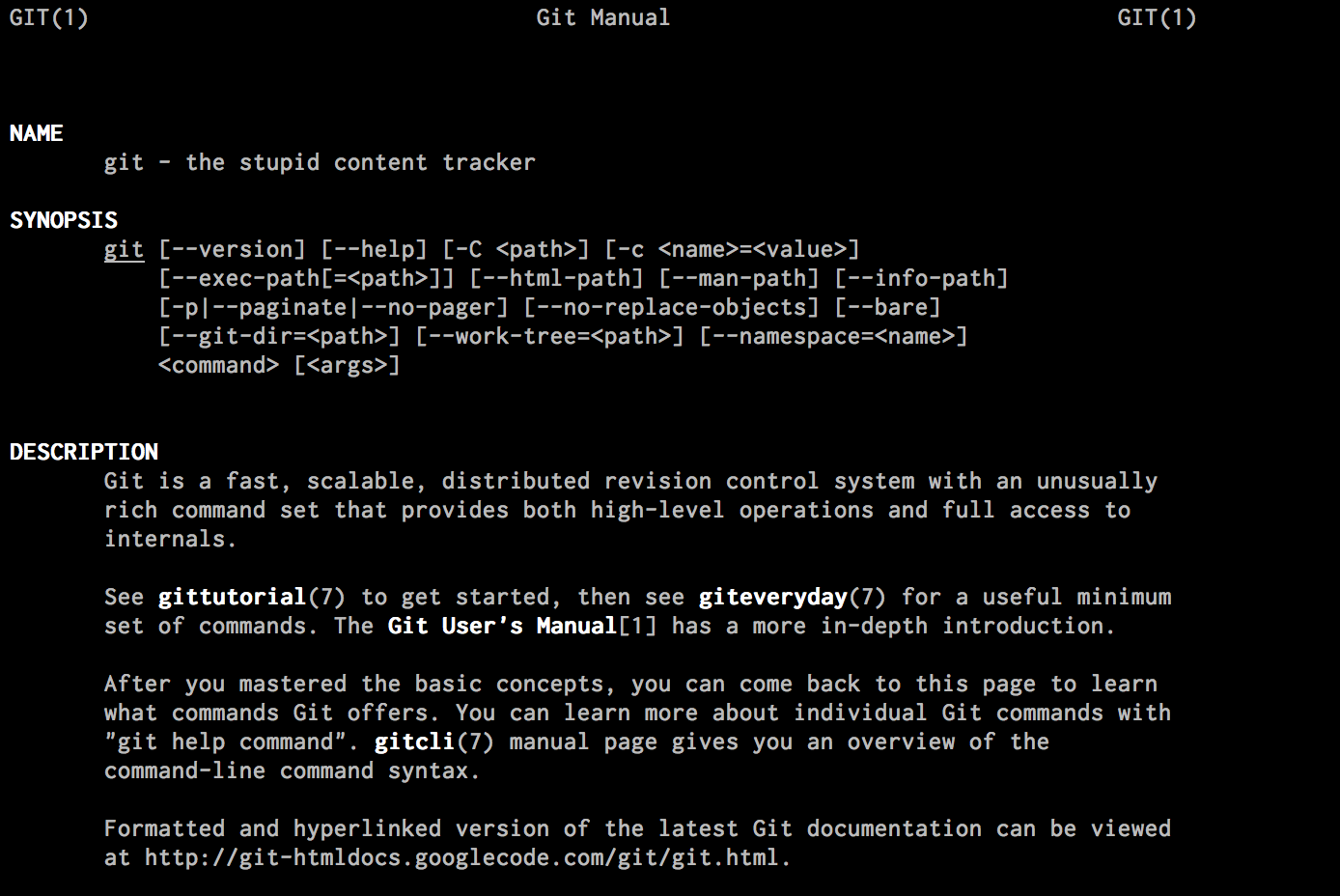 即使我们使用NoSQL(如mssql)我们也很难逃离这种模式。我们定义这些数据,为在使用的时候更方便。存储这些数据只是这个过程中的一部分,下部分就是取出这些数据并对他们进行过滤,取出我们需要的数据。 Web的骨架就是这么简单,当然APP也是这样的。难的地方在于存储怎样的数据,返回怎样的数据。不同的网站存储着不同的数据,如淘宝存储的是商品的信息,Google存储着各种网站的数据——人们需要不同的方式去存储这些数据,为了更好地存储衍生了更多的数据存储方案——于是有了GFS、Haystack等。运营型网站想尽办法为最后一公里努力着,成长型的网站一直在想着怎样更好的返回数据,从更好的用户体验到机器学习。而数据则是这个过程中不变的东西。 尽管,我已经想了很多办法去尽可能减少元素——在最开始的版本里只有标题与内容。但为了满足我们在数据库中定义的结构,不得不造出来这么多对于一般用户不友好的字段。如链接名是为了存储的文件名而存在的,即这个链接名在最后会变成文件名,参考代码如下所示: repo.write('master', 'contents/' + data.url + '.json', stringifyData, 'Robot: add article ' + data.title, options, function (err, data) { if(data.commit){ that.setState({message: "上传成功" + JSON.stringify(data)}); that.refs.snackbar.show(); that.setState({ sending: 0 }); } }); 上面的数据就会变成一个对象存储到“数据库”中。 今天 ,仍然有很多人用Word、Excel来存储数据。对于他们来说,这些软件更为直接,他们简单地操作一下就可以对数据进行排序、筛选。数据以怎样的形式存储并不重要,重要的是他们都以文件的形式存储着。 二、git作为NoSQL数据库 在控制台中运行一下 man git你会得到下面的结果,如图2所示: 图2所示的答案看起来很有意思——不过这看上去似乎无关主题。 不同的数据库会以不同的形式存储到文件中去。blob是git中最为基本的存储单位,我们的每个content都是一个blob。redis可以以rdb文件的形式存储到文件系统中。完成一个CMS,我们并不需要那么多的查询功能。 > 这些上千年的组织机构,只想让人们知道他们想要说的东西。 我们使用NoSQL的原因是: