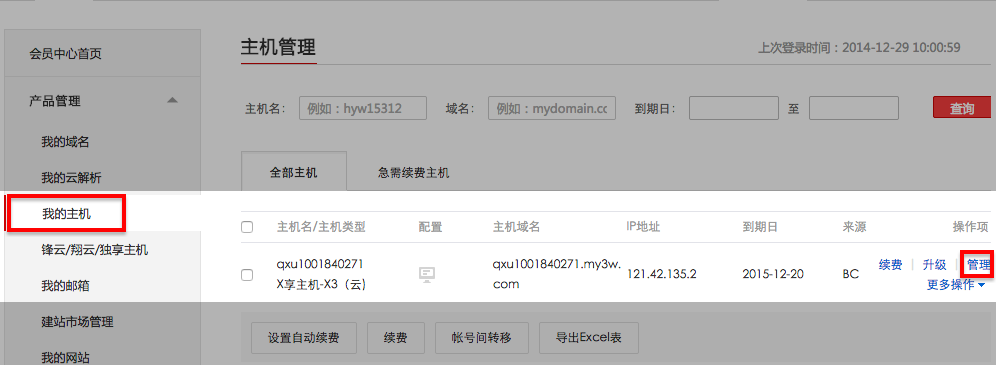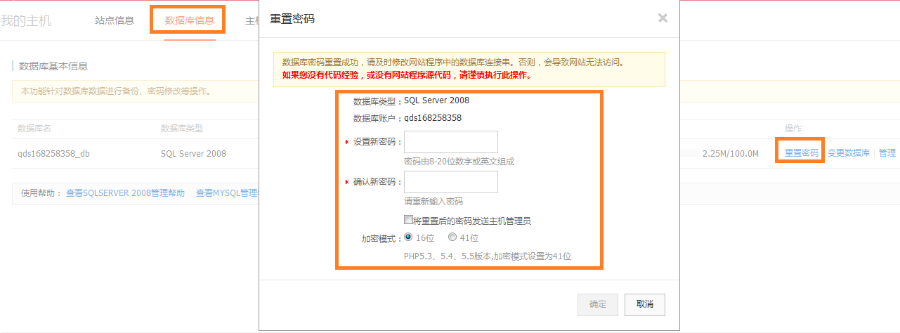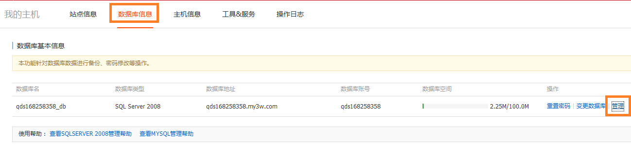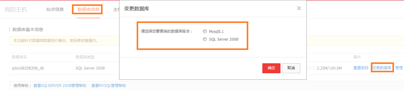 MySQL5.1使用参考手册 使用MySQL5.1数据库的虚拟主机,MySQL数据库相关信息都能够进入主机管理控制台查看、修改及管理。如下图所示: 一、进入主机管理控制台,在“数据库信息”页面,可以进行重置密码、备份、管理的相关操作; (1)、重置密码:系统默认提供的数据库密码是加密的,如果初次使用请先重置数据库管理密码在进行管理,如下图所示: (2)、变更数据库:选择要使用的数据库,再选择点击确定; 特别说明:更换数据库版本后,需重置数据库的密码,否则可能造成数据库连接不成功。更换数据库版本,会清空当前数据库的内容。请确认数据库成功备份后,再执行这项操作。如图所示: (3)、管理:对数据库进行具体管理,点击“管理”将登陆DMS页面,返回旧版就进入phpMyAdmin登陆页面; 登录时请记得输入相应的数据库密码。如下图所示: (4)、备份数据库:数据库备份后都会通过FTP将备份文件上传到指定FTP目录下,windows系统上传目录为根目录,linux上传目录为"/myfolder",如下图所示: 二、phpMyAdmin管理,在“主机管理控制台”的“数据库信息”页面中点击“管理”后,返回旧版phpMyAdmin登陆页面; (1)、登陆phpMyAdmin:输入主机的数据库服务器、数据库用户名及密码,再点击执行,如下图所示: (2)、数据库“导入”功能,也就是数据库的还原功能。当您购买完主机后或者更换主机后,您需要从本地上传您的MySQL数据库信息到数据库服务器上,此时您可以使用这项功能。点击“浏览”选择一个本地的sql文件;文件字符集数据库请根据源数据库的字符集来选择(一般为gbk或utf8),后面选用默认的,点击“执行”,就开始执行还原过程,如下图所示: (3)、数据库“操作”功能,提供添加表、重命名表、复制的功能,如下图所示: (4)、清空或者删除数据库操作,“全选”或“选中指定表”之后,再点击“执行”。就能够清空或删除数据库。如下图所示: 如问题还未解决,请联系售后技术支持。 上一条: 数据库导入的方法介绍 下一条: MySQL数据库的备份操作方法