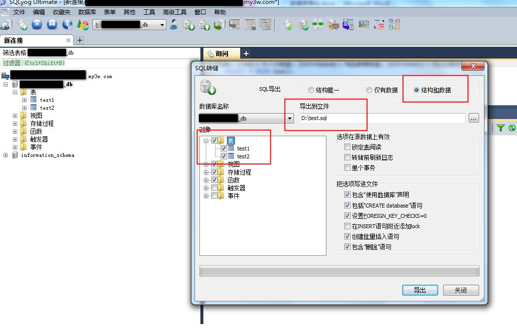 如何将云虚拟主机MySQL数据库导出到一个sql文件中