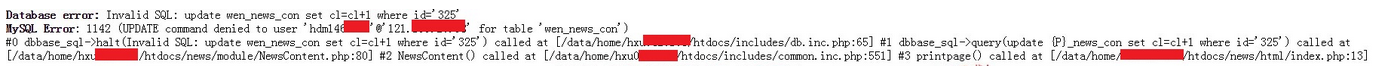 虚机主机网站数据库调用提示[INSERT,UPDATE command denied to user]的原因及解决