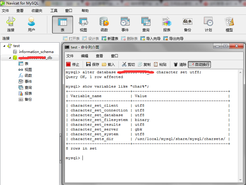 虚拟主机和轻云服务器修改mysql数据库编码的方法 目前,虚拟主机和轻云服务器可以通过navicat for mysql客户端修改mysql数据库编码,具体操作方法步骤如下所示: 步骤一、连接之后右键点击数据库名选择命令列界面; 步骤二、通过 show variables like "char%", 可以查看当前数据库编码,如下图所示: 步骤三、通过 alter database 数据库名 character set 字符集名,可以修改数据库编码。如下图所示: 如问题还未解决,请联系售后技术支持。