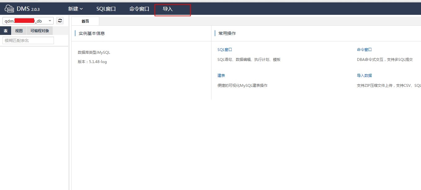 使用DMS控制面板导入Mysql数据库备份的步骤