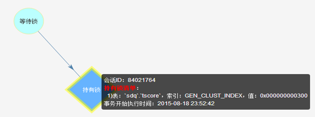 关于mysql rds如何通过dms查看innodb锁的方法? 1. 登录dms,在实例信息---innodb锁等待,如图所示: 2.当前如果有innodb表的锁等待信息,就会在此处显示出来,如图所示: 3. 将鼠标移到持有锁上方,就会显示当前持有锁的会话id. 点击会显示,是否要kill掉该会话,如图所示: 如果想要释放该锁,只需kill掉持有锁的会话. 非常方便. 无须自己动手写sql语句. 如问题还未解决,请联系售后技术支持。