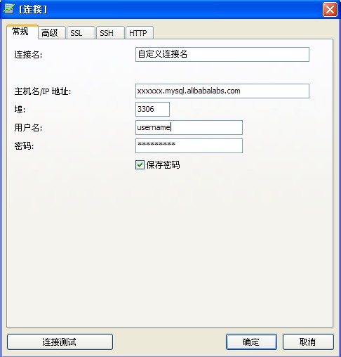 一、访问SQL Server数据库方法 使用SQL Server Management Studio访问RDS SQL Server数据,输入以下几个项目就可以了:RDS实例连接地址,端口号,数据库用户名和密码。链接端口号请输入3433(,如下图所示。 二、访问MySQL数据库方法的3种方法点击了解怎样提升RDS响应速度 方法1:Mysql命令登录 安装MySQL客户端后的用户,可进入命令行方式链接数据库。 命令格式如下:mysql -u user_name -h example.mysql.alibabalabs.com -P3306 -pxxxx 其中,-u 指定的是用户名, -h指定的是主机名, -P指定的是端口, -p指定的是密码。 方法2:客户端:Mysql-Front 首先,当我们启动Mysql-Front后会有一个添加对话的对话框弹出,可输入任意名称在名称处。 其次,点击“连接”选项卡。 在服务器处:填写RDS的数据实例链接名(如example201108.mysql.alibabalabs.com)。 在端口处:3306。 然后,点击注册选项卡,在密码和用户处输入申请数据库时填写的密码和数据库用户名后,点击下图箭头所示的小方框,就可以选取要连接的数据库 最后,当我们看到弹出数据库登录的对话框时,请继续点击确定按钮。便可链接并使用RDS数据库。 方法3:Navicat_mysql 输入数据实例链接地址在连接输入框中,端口(默认3306),数据库密码和数据库用户名后,点击确定即可。