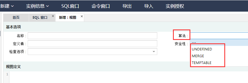 DMS中添加视图中算法是什么含义?