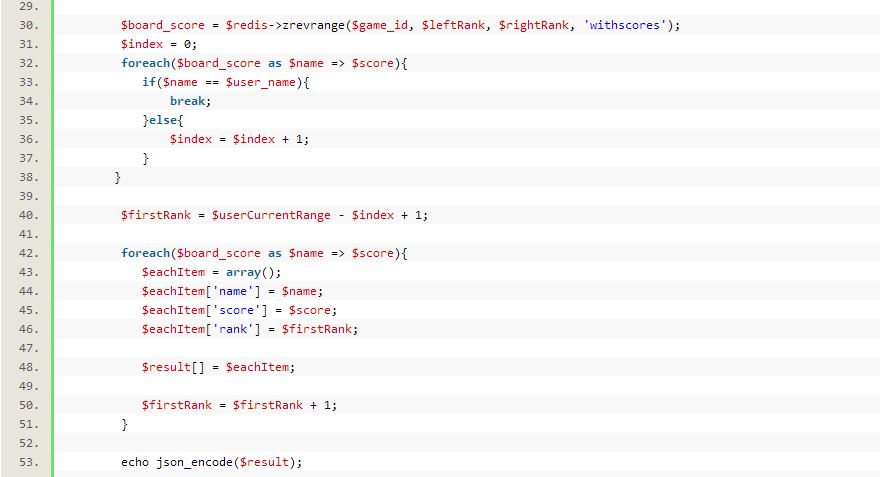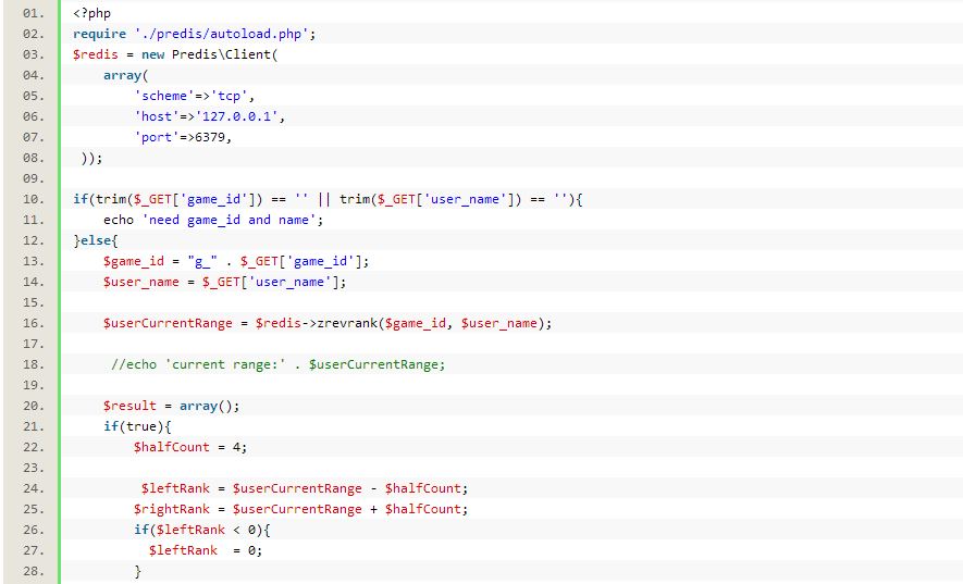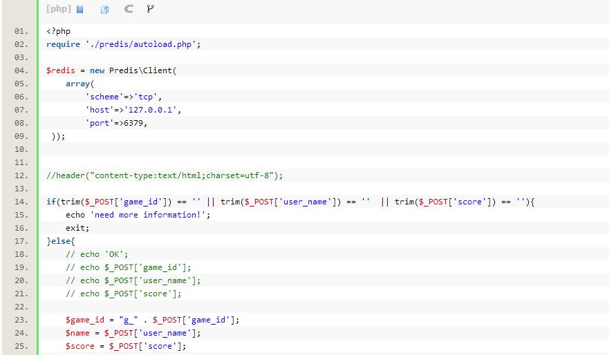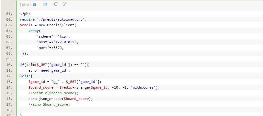 在休闲游戏中使用redis作为排行榜的数据存储 一、排行榜的需求 图1 我做了一个网站 http://www.cgame360.com/,专门放一些简单的html5游戏。现在有2个需求,我想获得一个游戏的top 10的用户的分数,还有一个是某个用户的排名,再加上前后4名的人员。如图1所示,上图中少了名字,那个cocos2d js输入框有点问题就没加了。 现在的问题就是用什么数据库来存储比较好?我想要尽可能快的查找出数据。 我搞过mysql这种关系型的数据库,第一感觉是用在这里会很慢。mysql中数据量一大就会变得很慢,因为它排序的时候会对所有数据进行处理。还有第二个需求用sql语句会很费力,我还没想到高效的实现方式。第一个前10名的,可以搞一个表来专门存前10名的。现在主要就是卡在第二个需求。 我谷歌了下,发现nosql比较适合现在的需求。nosql比较有名的是Hadoop,MongoDB。但我发现一个更加适合这个需求的数据库:redis. 二、redis中的有序集合 1.redis有序集合插入一条数据 这里再从安装redis讲起很浪费时间。我记得好像Mac的系统比较容易用,windows里redis不太好用。 redis的有序集合中插入一条数据非常容易: ZADD key score memeber 具体示例: ZADD game1 89 tom 这样game1中就有一条数据:Tom的分数是89 2. redis得到排名在某个范围的元素列表 ZRANGE key start stop [withscores] ZREVRANGE key start stop [withscores] 具体例子: ZRANGE game1 0 -1 withscores 这样就可以得到game1中的所有记录,按从小到大排序,-1表示最后一个元素的意思。 那么我们想要得到前10的记录要用什么命令呢? 这非常简单:ZRANGE game1 -10 -1 withscores -10 表示往数10个的意思。如图1所示,是我的mac机执行的输出: 图2 zrevrange 表示逆向的意思,会从大到小输出。 3. redis得到一个元素的排名 ZRANK key member ZREVRANK key memeber 具体示例: zrank game1 tom 4. redis 得到一个元素的分数 ZSCORE key member 具体示例: zscore game1 tom 三、PHP 中使用redis 上面讲的redis命令已经足够我们使用,接下来就是用redis和java或php等服务器语言来组成一个服务了。我这里选择了PHP的原因是我感觉用户提交一个分数用http的post,得到排行榜的分数用php的get够用了。 php中使用redis有两种方式,分别是predis 与phpredis,前者为完全使用php的,后者是c语言编写的php扩展。后者的性能会好些,但需要安装php扩展比较麻烦。predis非常简单,就是一些php文件,扔到网站目录下就能工作了。所以在这里选择使用了predis. 1.插入一条数据 如图2所示,我就简单地判断了下他现在的分数是不是比以前的高,如果比以前的高就插入一条数据。非常简单。 2.得到前10的玩家分数 图4 如图3所示,看起来非常简单,最后我用了json_encode把php中的数组转换成json了。这样的话方便处理。 3.得到我的排名 图4所示的,稍微复杂了一点点,我先得到这个玩家的排名,这样就可以得到他前后4名玩家的排名区间了,用下zrevrange就ok了。就是要注意left是负数的话是其他的意思,所以要避免是负数。最后我对php数组中加入了排名信息,再次以json返回。 四、cocos2d js中的http php已经可以返回json的数据了,下面讲下cocos2d js中如何使用http 来显示top 10的玩家信息。如图5所示,直接给出代码,也比较简单。主要要注意的是要对返回的数据进行JSON.parse处理。插入数据用post,得到排行榜信息用get就OK了。我也没加反作弊功能 最后大家玩下这个使用了上面讲到的技术的html5游戏,用cocos2d js开发的。http://www.cgame360.com/halloweengame/ 上一条: 10个教程让你轻松备份MySQL数据库 下一条: PostgreSQL(数据库)的一些资料