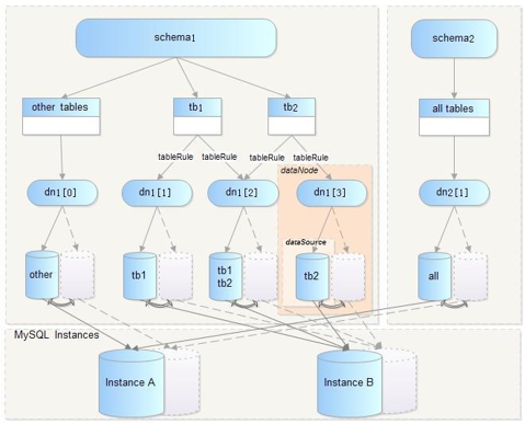 一、Cobar的核心功能 如图1所示: 1.分布式: Cobar的分布式主要是通过将表放入不同的库来实现: