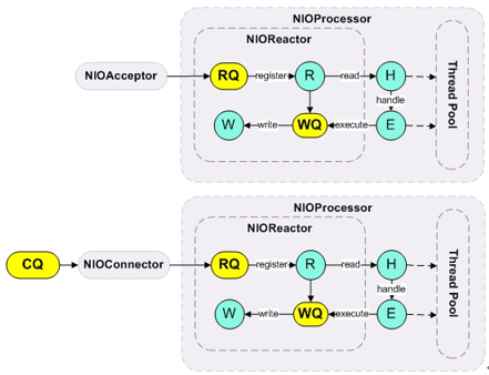 Cobar支持的数据库结构(schema)的层次关系具有较强的灵活性,用户可以将表自由放置不同的datanode,也可将不同的datasource放置在同一MySQL实例上。在实际应用中,需要通过配置文件(schema.xml)来定义我们需要的数据库服务器与表的分布策略。 四、Cobar的实现原理 Cobar的前、后端模块都实现了MySQL协议;当接受到SQL请求时,会依次进行解释(SQL Parser)与路由(SQL Router)工作,然后使用SQL Executor去后端模块获取数据集(后端模块还负责心跳检测功能);如果数据集来自多个数据源,Cobar就需要把数据集进行组合(Result Merge),最后返回响应。如图3所示 Cobar采用了主流的Reactor设计模式来处理请求,并且使用NIO进行底层的数据交换,这大大提升了系统的负载能力。其中,NIOAcceptor用于处理前端请求,NIOConnector则用于管理后端的连接,NIOProcessor用于管理多线程事件处理,NIOReactor则用于完成底层的事件驱动机制,就是看起来与Mina和Netty的网络模型比较相似。如图4所示 上一条: MySQL Cluster初试 下一条: MYSQL数据库文件的优化