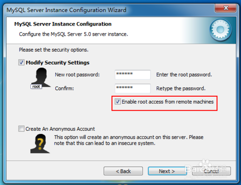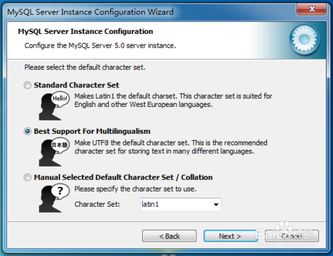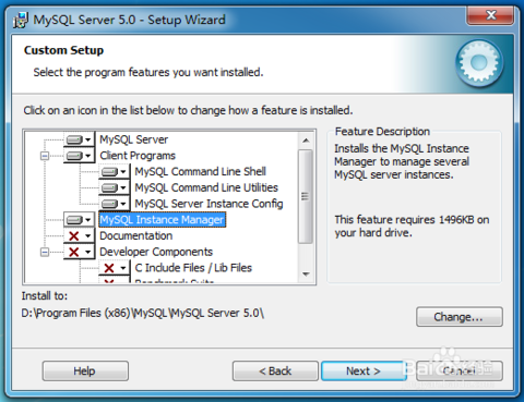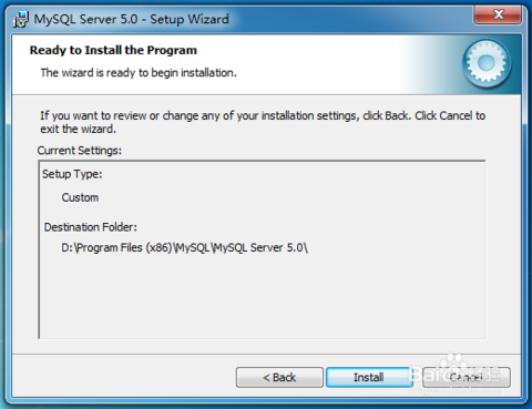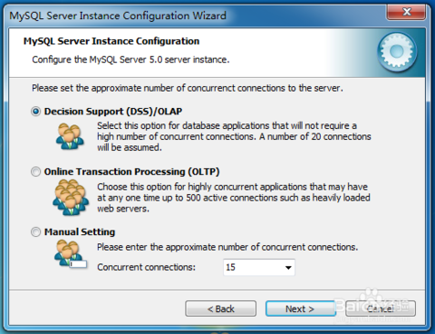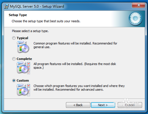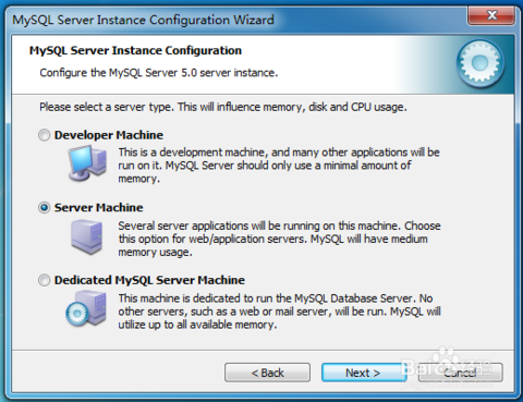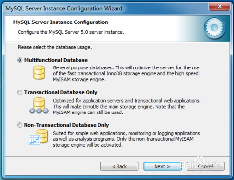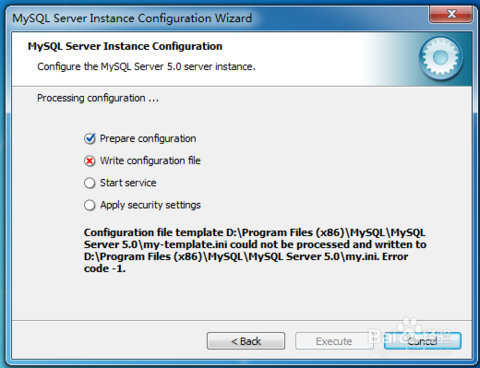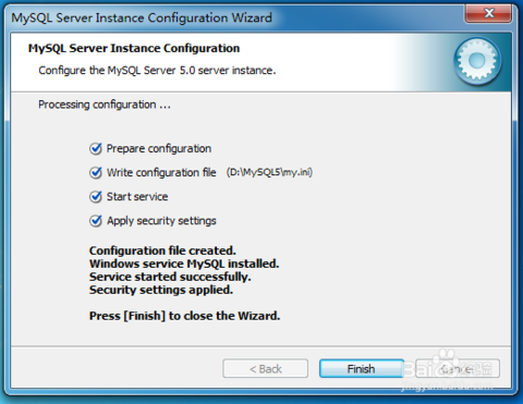 Windows环境:MySql数据库的安装配置(图) MySQL为一个关系型数据库管理系统,由瑞典MySQL AB公司开发,目前属于Oracle公司。Mysql为最流行的关系型数据库管理系统,在WEB应用方面MySQL是最好的RDBMS(关系数据库管理系统)应用软件之一。MySQL是一种关联数据库管理系统,关联数据库将数据保存在不同的表中,并不是将所有数据放在一个大仓库内,这样增加了速度,也提高了灵活性。MySQL所使用的SQL语言是用于访问数据库的最常用标准化语言。MySQL软件采用了双授权政策,它分为社区版与商业版,因为它其体积小、速度快、总体拥有成本低,尤其是在开放源码这一方面的特点,一般中小型网站的开发都选择MySQL作为网站数据库。由于其社区版的性能卓越,搭配PHP与Apache可组成良好的开发环境。 (以下图片来自于百度) 安装工具/原料 mysql-5.0.37-win32 方法/步骤 第1步:运行安装程序,点击“Next”,如图1所示 第2步:选择“Custom”,点击“Next”,如图2所示 第3步:这一步可以将不需要的安装删除,页可以更改安装目录,点击“Next”,如图3所示 第4步:点击“Install”,开始安装。如图4所示 第5步:等待安装,如图5所示 第6步:点击"Skip Sign-Up"跳过注册,点击“Next”,如图6所 图6 第7步:安装完成,点击“Finish”。如图7所示 第8步:进入配置过程,点击“Next”,如图8所 第9步:点击“Detailed Configuration”,点击“Next”,如图9所 第10步:选择”Server Machine“,点击“Next”,如图10所 第11步:选择“Multifunctional Database”,点击“Next”,如图11所示 第12步:选择数据库文件保存目录,通常保存到非系统盘下,如图12所示 第13步:选择“Decision Support(DAA)/OLAP”,点击“Next”,如图13所示 第14步:选择“Enable TCP/IP Networking”,点击“Next”,如图14所示 第15步:选择“Best Support Multilingualism”,点击“Next”,如图15所示 第16步:安装为Windows服务,添加环境变量。点击“Next”,如图16所示 第17步:如果要远程连接到此数据库,需要选择“Enable root access from remote machines”,点击“Next”,如图17所示 第18步:执行配置过程。点击“Execute”,如图18所示 第19步:安装路径不要带有中文!也不能有空格括号之类的,否则就会遇到下图显示的错误。如图19所示 第20步:若安装错误,需要卸载,重新安装,更改安装目录。如图20所示 第21步:配置保存成功。点击“Finish”,如图21所示 第22步:打开命令行窗口,如图22所示 第23步:输入“root”用户密码,回车;输入“show databases;”,回车