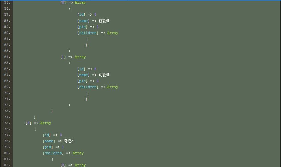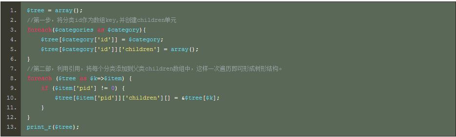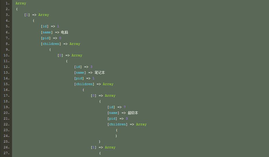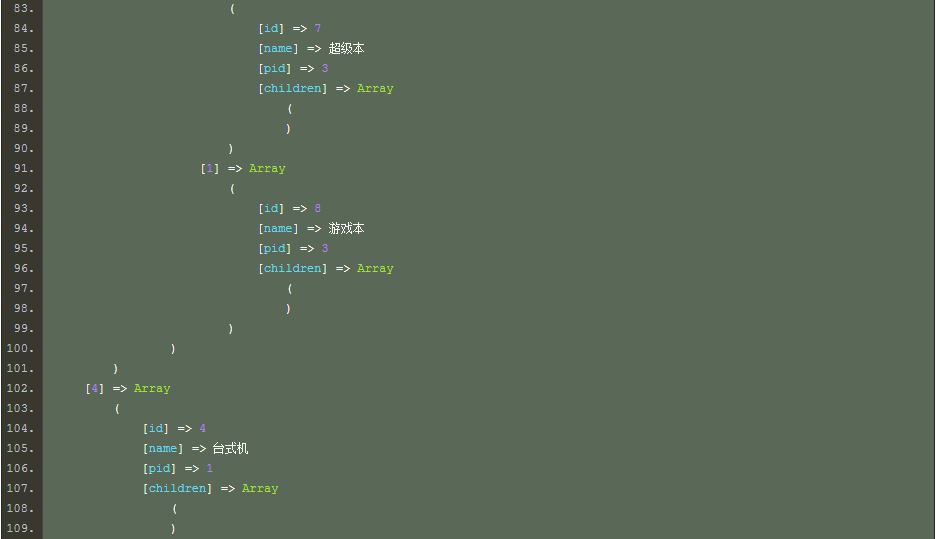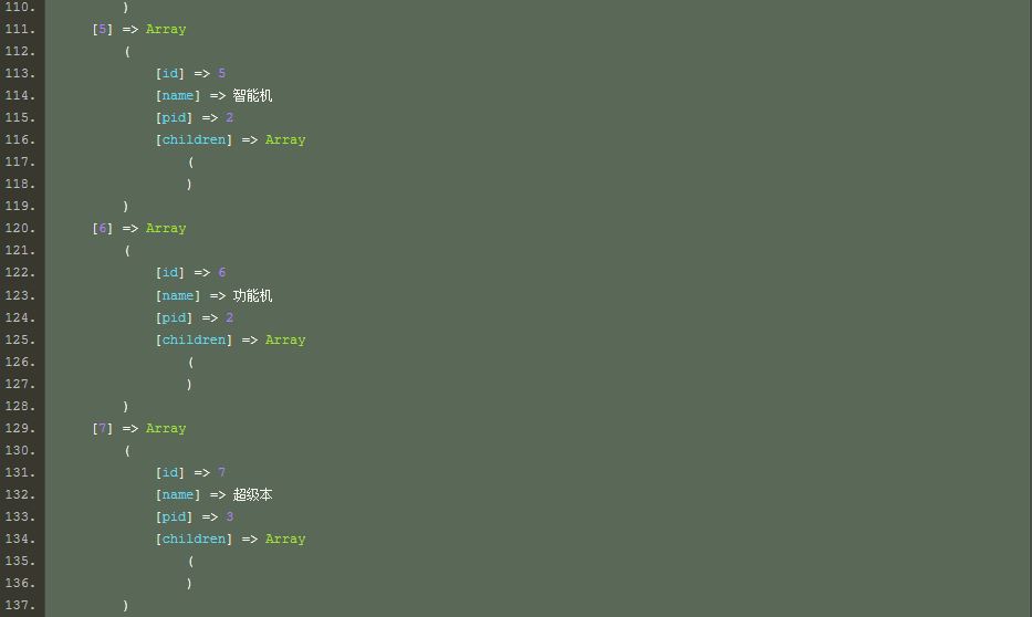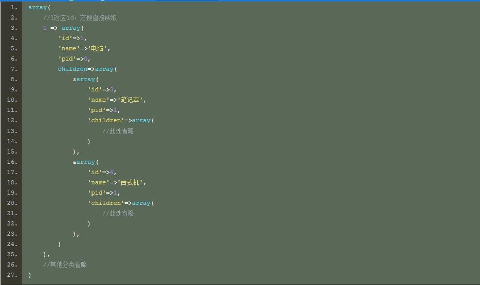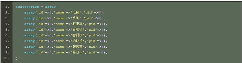 PHP与MySQL 无限分类实现的两种方法 无限分类是个老话题了,PHP和MySQL中实现无限分类的思路也有许多种,本文主要介绍其中2种最巧妙的无限分类方法,一起来看看吧。 方法一: 这种方法是一种很常见、很传统的方法,我们先看表结构 表:category id int 主键,自增 name varchar 分类名称 pid int 父类id,默认0 顶级分类的 pid 默认就是0了。当我们想取出某个分类的子分类树的时候,基本思路就是递归,当然,考虑到效率的问题不建议每次递归都查询数据库,先将所有分类取出来是通常的做法,保存到PHP数组里,再进行处理,最后还可以将结果缓存起来以提高下次请求的效率。 先来构建一个原始数组,这个直接从数据库中拉出来就行,如图1所示: 图1 目标是将它转化为下面的这种结构 电脑 —笔记本 ——-超级本 ——-游戏本 —台式机 手机 —智能机 —功能机 用数组来表示的话,可以增加一个 children 键来存储它的子分类,如图2所示: 图2 处理过程,如图3所示: 图3 打印结果如下,如图4所示: