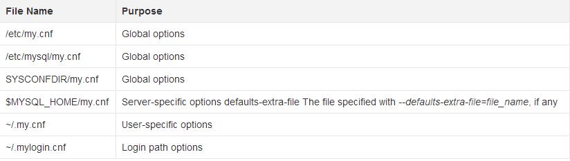 CentOS 6.7 安装 MySQL 5.6 源代码及兼容包 源代码包下载方法:官网 > Downloads > MySQL Community Edition (GPL) > MySQL Community Server (GPL) > Select Platform > Source Code > Generic Linux (Architecture Independent), Compressed TAR Archive (mysql-5.6.29.tar.gz) > Download] > No thanks, just start my download. 兼容包下载方法:官网 > Downloads > MySQL Community Edition (GPL) > MySQL Community Server (GPL) > Select Platform > Linux Generic > Linux - Generic (glibc 2.5) (x86, 32-bit), RPM Package Compatibility Libraries (MySQL-shared-compat-5.6.29-1.linux_glibc2.5.i386.rpm) > Download > No thanks, just start my download. 官网提供了一系列的兼容包(可以在下载页面 Linux Generic 分支中查看),主要是为了解决新版本的 MySQL 向下兼容的问题,比如MySQL-shared-compat-xxx.rpm 包是为了解决 mysql-libs 与新版 MySQL 冲突的问题。 这里以 CentOS 6.7 为例,mysql-libs 默认被其他一些软件所依赖,比如 postfix、 crontabs 等等。一般情况下,我们在安装前都先使用 rpm -qa | grep mysql 查看系统都已经安装了哪些 MySQL 的软件。然后,将这些软件卸载后,再进行 MySQL 的安装。但是,当我们使用 yum uninstall mysql-libs 时,会被要求把所依赖的软件包(postfix、 crontabs)一起删除,但是这并不是我们希望的。因为我们不希望卸载这两款软件,而只是要卸载 mysql-libs。 不卸载 mysql-libs,直接安装 MySQL 可不可以呢?根据我的测试结果来看,目前是不行的。因为在安装 mysql-libs 后,默认配置文件会存放在 /etc/my.conf。如果此时我们把 MySQL 都安装完毕(假如安装目录为默认的 /usr/local/mysql),那么 MySQL 的配置文件会存放在 /etc/usr/local/mysql/my.cnf,根据 mysqld 服务器启动读取配置文件的顺序看(见下表),/etc/my.conf 将会是第一个读取的配置文件,很显然,这会直接影响到 MySQL 的启动和运行。 On Unix, Linux and OS X, MySQL programs read startup options from the following files, in the specified order (top files are read first, later files take precedence). 出处 MySQL 启动时,读取配置文件的顺序如下: 怎样才可以实现,既节约够满足其他软件对 mysql-libs 的依赖需要,也不影响到新安装的 MySQL 呢?官网提供了MySQL-shared-compat-xxx.rpm 兼容包,用户可以使用 rpm 或者yum 安装该软件包。对此,官网的描述如下所示: MySQL-shared-compat can safely be installed alongside mysql-libs because libraries are installed to different locations. Therefore, it is possible to install MySQL-shared-compat first, then manually remove mysql-libs before continuing with the installation. After mysql-libs is removed, the dynamic linker stops looking for the client library in the location where mysql-libs puts it, and the library provided by the MySQL-shared-compat package takes over. 出处 安装环境及依赖关系 编译安装时,所需工具: CMake gcc >= 4.2.1 make >= 3.75 编译安装时,所需依赖软件包: ncurses-devel bison [可选] 自 MySQL 5.5 开始,MySQL 源代码的配置过程不再使用 GUN autotools (Configure),而是使用 CMake工具。 ncurses-devel 在 MySQL 安装过程中是必须存在的一个库,否则将在执行 cmake 过程中,出现以下错误: -- Could NOT find Curses (missing: CURSES_LIBRARY CURSES_INCLUDE_PATH) CMake Error at cmake/readline.cmake:85 (MESSAGE): Curses library not found. Please install appropriate package, remove CMakeCache.txt and rerun cmake.On Debian/Ubuntu, package name is libncurses5-dev, on Redhat and derivates it is ncurses-devel. bison 是可选的一个库,它不会影响到 MySQL 的正常编译与安装过程。这个库只要求在安装 MySQL 开发版源代码(development source code)时安装上。但是从我们对 MySQL 源码进行编译的过程当中发现,它在编译完成后报一个警告。把 bison 安装上只是为了防止出现警告,减少不必要的困惑。 Warning: Bison executable not found in PATH 在安装这些工具和软件包前,我们建议先检查该软件包是否已经存在以及版本是否满足 rpm -q PACKAGE yum list installed | grep PACKAGE 使用 yum 进行安装和更新 yum install PACKAGE yum update PACKAGE 安装方法 在工具以及依赖软件都安装好后,就可以进行安装了。下面以以简单的方式展示了整个 MySQL 安装过程,包括了编译安装、初始化数据目录、添加启动脚本。如果你希望修改数据库默认编码为 utf8 等等,稍后我们将会介绍 cmake 的相关参数,来实现更好定制 MySQL 的安装。 # Preconfiguration setup shell> groupadd mysql shell> useradd -r -g mysql -s /bin/false mysql # Beginning of source-build specific instructions shell> tar zxvf mysql-VERSION.tar.gz shell> cd mysql-VERSION shell> cmake . shell> make shell> make install # End of source-build specific instructions # Postinstallation setup shell> cd /usr/local/mysql shell> chown -R mysql . shell> chgrp -R mysql . shell> scripts/mysql_install_db --user=mysql shell> chown -R root . shell> chown -R mysql data shell> bin/mysqld_safe --user=mysql & # Next command is optional shell> cp support-files/mysql.server /etc/init.d/mysql.server 首先,我们添加了 mysql 用户及用户组,并且把 /usr/local/mysql 目录的所有者和所属组都修改为 mysql。创建这个用户的目的是为了我们需要有一个用户启动与管理 mysql 服务器,同时在稍后执行数据目录初始化时,也会以该用户身份执行。 实际上,在数据目录初始化后,我们把 /usr/local/mysql 目录的所有者修改为了 root ,而只是把 /usr/local/mysql/data 的所有者修改为 mysql。那是因为这样的权限设置,就可以满足 mysql 用户对 MySQL 数据库服务器的日常管理. 执行 mysql_install_db 脚本实现数据目录初始化的过程。实际上就是创建 data 目录,并且创建 mysql 系统数据库。该数据库包含了 MySQL 服务器的