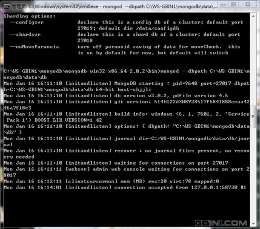 Nosql数据库教程之MongoDB(上) 图1 相信大家都听说过nosql解决方案吧?nosql解决方案是web开发中很流行的技术。那你一定也有听说过MongoDB? 你一定也准备好了来学习一下web开发中最酷的技术之一MongoDB? 在本次教程中,我们将介绍MongoDB来帮助大家了解MongoDB,让大家能够像Mysql一样熟练的应用MongoDB到web开发中去。 前言:为什么使用MongoDB? 由于我们在面对对象的开发过程中都被鼓励尝试将逻辑的模型应用到代码开发中去,所以我们使得代码在概念上更加容易理解。当我们需要这样做的时候,我们最好能够清晰地看到逻辑操作的互动及其信息的处理。 那么假设如果你可以将需要使用的程序化模型直接保存的话呢?那么如果你可以直接保存它们而不需要保存数据库中表里面的一行一行数据呢? 学习MongoDB,你就可以实现这个功能! 本次教程,我们将学习基本的MongoDB知识,例如,创建,更新与删除数据库和记录,执行复杂的查询并且使用MapReduce来执行初级的数据挖掘。 一、安装Mongo 首先,我们需要下载MongoDB。 在这个地址中我们需要寻找支持你的平台与架构的安装,由于我的操作系统是win7,所以这里下载使用的是2.0.2 for Windows 64-bit。你们可以根据自己的电脑下载合适的版本。 解压安装完毕后,请你创建一个数据库文件夹,这里我创建在C:\WS-GBIN1\mongodb\data\db文件下。 然后运行数据库启动命令,代码如下所示: mongod --dbpath C:\WS-GBIN1\mongodb\data\db 这个时候会在C:\WS-GBIN1\mongodb\data\db目录下创建Mongdb相关文件。 然后,请运行命令行 cmd。, 然后找到你安装的Mongodb目录下的bin目录,运行如下所示的命令: mongo 你可以看到如图3所示的界面: 如果你看到图3这样的窗口内容,那我们就已近安装完毕,要准备开始学习MongoDB! 命令行说明,代码如下所示: 图4 二、 创建一个数据库并且插入记录 初始化后,没有数据库创建。没关系只要我们插入记录,它会立刻自己创建。拷贝如下内容到命令行窗口,代码如下所示: 图5 没问题的话,我们确认一下数据库内容,使用如下的命令,代码如下所示: db.gbin1.find() 将看到图6所示的内容: 图6中的代码中显示了所有我们创建的记录,在这里需要提醒大家的是id字段。如果你不指定ID的话,mongodb自动为你生成。这是一个唯一标示。 你可以看到我们插入的所有记录,现在我们准备查询。 三、搜索记录 你记得前面的命令吧? 它查询返回了所有的记录。如果你要查询指定的内容呢? 回答是使用selector。 1.Selectors Selector是对于mongo来说类似sql中使用的where语句。它允许我们执行如下所说的操作: