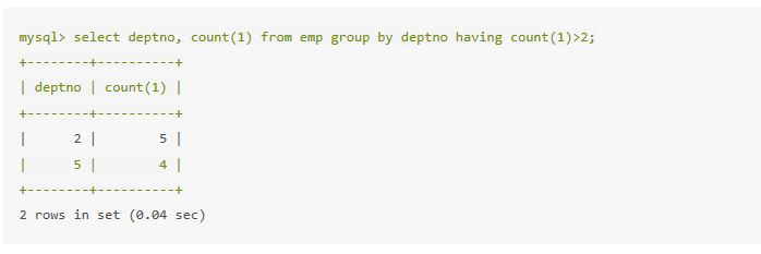 注意:having 和 where 的区别在于 having 是对聚合后的结果进行条件的过滤,而 where 是在聚 合前就对记录进行过滤,如果逻辑允许,我们尽可能用 where 先过滤记录,这样因为结果 集减小,将对聚合的效率大大提高,最后再根据逻辑看是否用 having 进行再过滤。 统计总数: