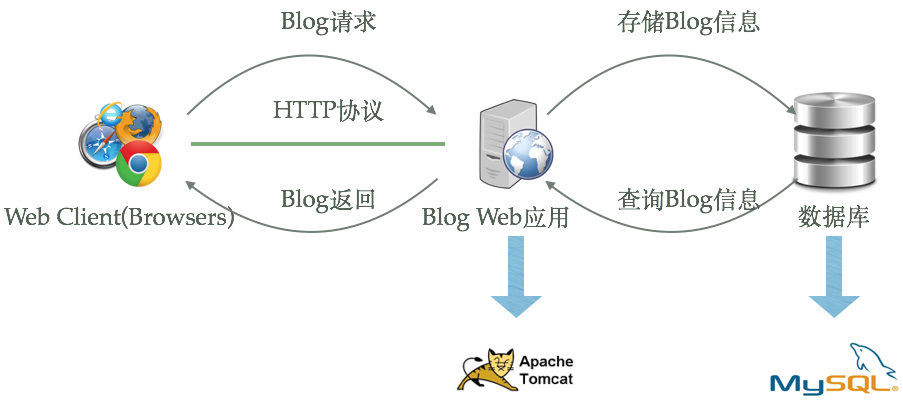 Web应用中数据库的基本概念 数据持久化 掌握了Servlet/JSP技术,我们已经可以创建动态的Web应用了。除了动态的Web界面,一个有价值的Web应用必然需要进行数据存储,开发上我们一般称之为数据持久化(Data Persistence)。从业务功能的角度出发,简单的应用可以认为就是数据的增删改查。比如一个产品级的博客应用,最核心的功能就是对博客内容的创建、修改、删除和查询,而这些功能都离不开Web服务器背后的数据库系统。 狭义地理解, “持久化”就是指把业务数据永久存储到数据库中;广义的来说,“持久化”包括和数据库相关的各种操作。将内存中的数据存入数据库就能够随时获取或者更新这些数据。所以让我们首先来了解一下数据库系统。 数据库简介 上个世纪60年代,数据库技术诞生,是计算机科学的一个重要的分支。当时计算机开始广泛地应用于数据管理,对数据的共享的要求越来越高。传统的文件系统已经不能满足人们的需要了。能够统一管理和共享数据的数据库管理系统(DBMS, Database Management System)应运而生。 DBMS的主要包括两个功能: 数据操纵功能:提供数据操纵语言(DML,Data Manipulation Language),用以实现对数据的基本操作(查询、插入、删除和修改) 数据定义功能:提供数据定义语言(DDL,Data Definition Language),用以定义数据库中的数据对象 数据库的运行管理和维护等,如数据的安全、完整性、并发和恢复等控制 自数据库从诞生以来,大致经历了以下几个阶段: 层次数据库与网状数据库 关系数据库 非关系型数据库 目前,非关系型数据库正在蓬勃的发展,比如Redis、MongoDB、BigTable等非关系型数据库已经被很多领域广泛的应用。 关系型数据库依然是Web开发中的主流数据库。我们将以使用最广泛的开源关系型数据库MySQL作为我们博客应用的数据库。 关系型数据库,是指使用关系模型来组织数据,使用集合代数等数学概念和方法来处理数据的一种数据库。在关系型数据库中,现实世界中的各种实体以及实体之间的各种联系均用关系模型来表示。不过我们这里先不深入其数学原理,我们以更形象的方式来理解关系型数据库的几个基本概念。 数据库表 关系可以认为就是一个二维表格,关系型数据库就是一组二维表格的集合,通过表格来描述和存数对象和对象之间的关系。 我们已经实现了博客页面,我们来分析一下这个页面: 从中我们看到,一篇博客至少具有以下信息: 博客标题 博客内容 创建时间 作者名称 作者头像 这些信息存储到数据库中,就这样一个blog表,如下图所示: 表中的每一列就是表的一个字段,对应Blog对象的一个属性;表中的每一张就是一条记录,对应于一篇具体的博客。 主键 数据存储起来之后我们需要非常方便得查询。接下来我们需要想一个问题:怎么才可以快速地识别出一条博客记录?一种方法是根据title来标识一条记录。如果Ricky也写了一篇名为“天码营是什么?”的博客呢?这时候title就不是唯一标识了。 这时我们可以给blog表,增加一个id字段,通过唯一的整数值来标识一条记录。能够唯一确定一条记录的字段就称为主键。 注意:多个字段可以一起作为一个表的主键,但是在开发中一般情况下我们使用自增的整数字段来作为主键。即每增加一条记录,记录的id的值就自动增加,这样就保证了每条记录的唯一性。` 字段的数据类型 表中的每个字段,与一个类的属性一样,具有数据类型。数据中有三种主要的数据类型:文本、数字和日期/时间类型。不同的数据类型拥有不同的特性,例如数字类型可以做一些数学操作,时间类型可以按照一定规则进行排序或筛选。同时,不同的数据类型在存储时是不一样,这就导致了不同的数据类型效率上有很大的差别。在后面的学习中,我们将会在数据库表的设计过程中讲解具体的数据类型,以及选择数据类型的最佳实践。 数据库表关系 一对一关系 我们可以把Blog的内容单独拿出来放在一张表中,命名为blog_content。那么blog_content和blog就是一对一的关系,一篇博客有其唯一的内容,一条内容也只会属于某一篇博客。 一对一关系相对不是很常见,但是依然有其应用场景。比如一篇博客信息中,占用空间的主要就是博客内容。将其独立出去,blog表的数据量就大大减小,在数据记录非常多时且如果需要频繁修改和访问blog表中的信息时,,可以极大的增加我们的读写效率。因为数据库表的存储的数据越少,读写效率越高。 一对多关系 观察Blog表中的数据,我们发现虽然只有David和Ricky两名作者,但是却出现了5次作者姓名和作者头像的信息,这样不仅浪费存储空间,带来潜在的不一致性等问题。 这样的表结构设计具有明显的不合理性。与类的设计需要符合面向对象的设计原则一样,表的设计也需要遵循一些范式来保证良好的表结构。 这里我们可以把作者的信息提取出来放到一个单独的user表中: 相应地需要修改blog表的结构: 我们发现blog表中多了一个author字段,保存的是User的id。这时就形成了一个外键约束。 我们说一个表具有外键,就是说表中一个字段或者几个字段的组合在另外一个表中是主键。回到场景中即:author有一个外键约束,外键是user表的主键id。 设置外键后,当往blog表中中插入数据时,数据库会自动检查插入数据的author字段,是否存在user表中存在对应的记录。如果不存在,数据库会抛出错误,拒绝插入,这样就可以保证数