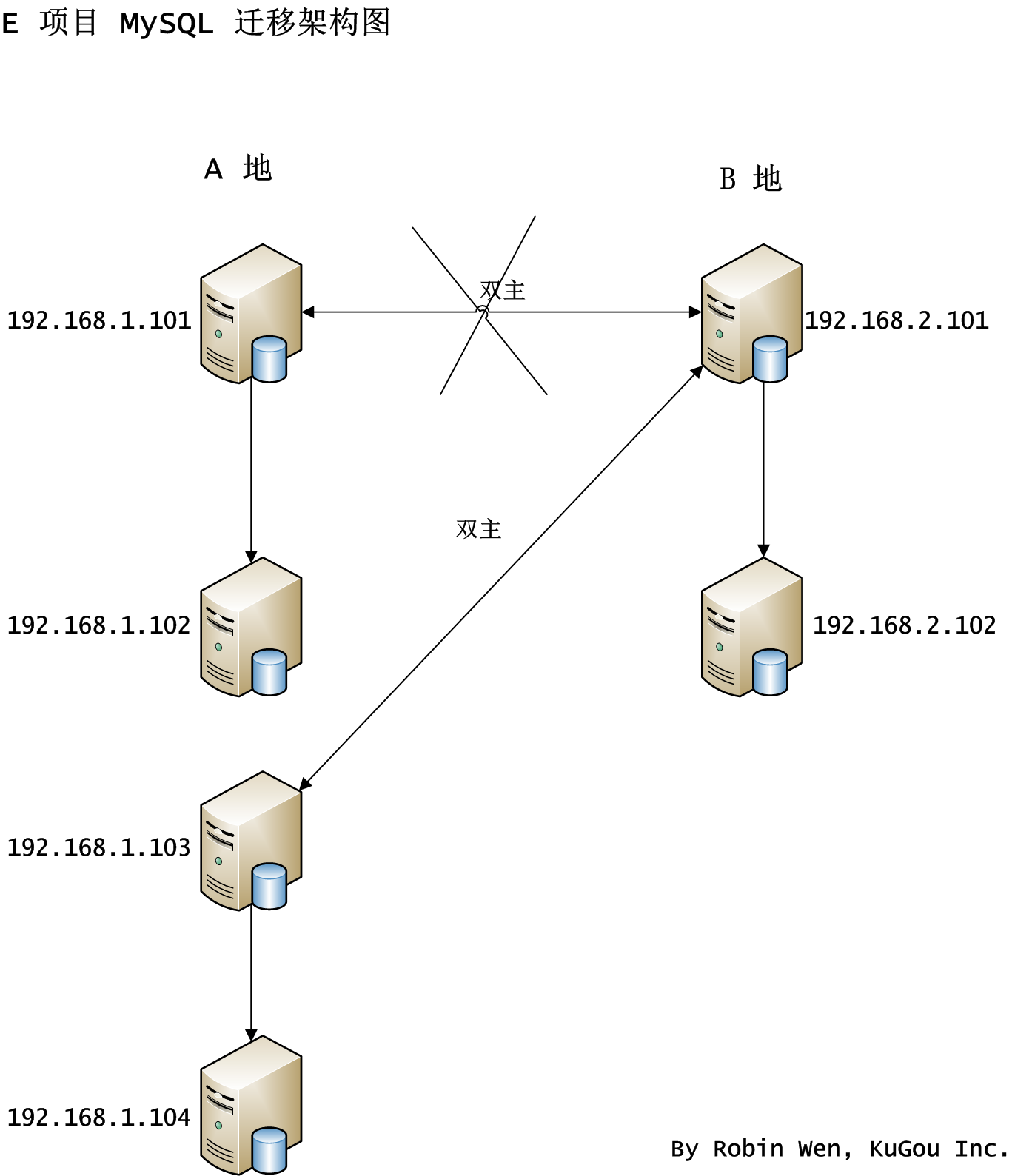 (14)业务迁移之前,断掉 103 与 101 的同步关系; (15)做完上免得步骤,可以和研发协调,把 101 的读写业务切回 102,读业务切到 104。需要注意的是,此时 101 和 103 均可以写,需要保证 101 在没有写入的情况下切到 103,可以使用 FLUSH TABLES WITH READ LOCK 锁住 101,然后业务切到 103。注意,一定要业务低峰执行,切记; (16)切换完成后,观察业务状态; (17)若业务没有问题,证明迁移成功。 3.5 场景五 双主结构跨机房迁移 接下来看看双主结构跨机房迁移怎么做。某项目出于容灾考虑,使用了跨机房,采用了双主结构,双边均可以写。因为磁盘空间问题,需要对 A 地的机器进行替换。打算将主节点 1.101 和从节点 1.102 同时迁移至新的机器 1.103 和 1.104,1.103 充当主节点,1.104 充当从节点。B 地的 2.101 和 2.102 保持不变,但是迁移完成后,1.103 和 2.101 互为双主。架构图如图5所示。由于是双主结构,两边同时写,如果要替换主节点,单方必须有节点停止服务。如图5所示的双主结构跨机房迁移架构图 图5 具体做法如下所示: (1)1.103 与 1.104 新建实例,搭建主从关系,此时的主节点和从节点处于空载; (2)确认 1.102 MySQL 状态(主要看 PROCESS LIST),注意观察 MASTER STATUS 不再变化。观察机器流量,确认无误后,停止 1.102 从节点的服务; (3)1.103 新建 MySQL 实例,建成以后,停止 MySQL 服务,并且将整个数据目录 mv 到其他地方做备份; (4)将 1.102 的整个 mysql 数据目录使用 rsync 拷贝到 1.103; (5)拷贝的同时,在 1.101 授权,使 1.103 有拉取 binlog 的权限(REPLICATION SLAVE, REPLICATION CLIENT); (6)待拷贝完成,修改 1.103 配置文件中的 server_id,注意不要和 1.102 上的一致; (7)在 1.103 启动 MySQL 实例,注意配置文件中的数据文件路径以及数据目录的权限; (8)进入 1.103 MySQL 实例,使用 SHOW SLAVE STATUS 检查从库状态,可以看到 Seconds_Behind_Master 在递减; (9)Seconds_Behind_Master 变为 0 后,表示同步完成,此时可以用 pt-table-checksum 检查 1.101 和 1.103 的数据一致,但比较耗时,而且对主节点有影响,可以和开发一起进行数据一致性的验证; (10)我们使用相同的办法,使 1.104 变成 1.103 的从库; (11)与研发沟通,除了做数据一致性验证外,还需要验证账号权限,以防业务迁走后访问出错; (12)这时我们要做的就是将 1.103 变成 2.101 的从库,具体的做法可以参考场景四; (13)需要注意的是,1.103 的单双号配置需要和 1.101 一致; (14)做完上面的步骤,可以与研发协调,把 1.101 的读写业务切到 1.103,把 1.102 的读业务切到 1.104。观察业务状态; (15)如若业务没有问题,证明迁移成功。 3.6 场景六 多实例跨机房迁移 接下来我们看看多实例跨机房迁移证明做。每台机器的实例关系,我们可以参考图6的内容。此次迁移的目的是为了做数据修复。在 2.117 上建立 7938 和 7939 实例,替换之前数据异常的实例。由于业务的原因,某些库只在 A 地写,某些库只在 B 地写,所以存在同步过滤的情况。如图6所示的 多实例跨机房迁移架构图 图6 具体做法如下所示: (1)1.113 针对 7936 实例使用 innobackupex 做数据备份,注意需要指定数据库,并且加上 slave-info 参数; (2)备份完成后,将压缩文件拷贝到 2.117; (3)2.117 创建数据目录以及配置文件涉及的相关目录; (4)2.117 使用 innobackupex 恢复日志; (5)2.117 使用 innobackupex 拷贝数据; (6)2.117 修改配置文件,注意如下参数:replicate-ignore-db、innodb_file_per_table = 1、read_only = 1、 server_id; (7)2.117 更改数据目录权限; (8)1.112 授权,使 2.117 有拉取 binlog 的权限(REPLICATION SLAVE, REPLICATION CLIENT); (9)2.117 CHANGE MASTE TO 1.112,LOG FILE 和 LOG POS 参考 xtrabackup_slave_info; (10)2.117 START SLAVE,查看从库状态; (11)2.117 上建立 7939 的方法类似,不过配置文件需要指定 replicate-wild-do-table; (12)与开发一起进行数据一致性的验证和验证账号权限,以防业务迁走后访问出错; (13)做完上面的步骤,可以和研发协调,把相应业务迁移到 2.117 的 7938 实例和 7939 实例。观察业务状态; (14)若业务没有问题,证明迁移成功。 四、 注意事项 我们介绍完不同场景的迁移方案后,还需要需要注意下面的几点: (1)数据库迁移,如果涉及事件,记住主节点打开 event_scheduler 参数; (2)不管什么场景下的迁移,都要随时关注服务器状态,比如磁盘空间,网络抖动;另外,对业务的持续监控也是必不可少的; (3)CHANGE MASTER TO 的 LOG FILE 和 LOG POS 切记不要找错,如果指定错了,带来的后果就是数据不一致或者搭建主从关系失败; (4)执行脚本不要在 $HOME 目录,记住在数据目录; (5)迁移工作可以使用脚本做到自动化,但不要弄巧成拙,任何脚本都要经过测试; (6)每执行一条命令都要三思和后行,每个命令的参数含义都要搞明白; (7)多实例环境下,关闭 MySQL 采用 mysqladmin 的形式,不要把正在使用的实例关闭了; (8)从库记得把 read_only = 1 加上,这会避免很多问题; (9)每台机器的 server_id 必须保证不一致,否则会出现同步异常的情况; (10)正确配置 replicate-ignore-db 和 replicate-wild-do-table; (11)新建的实例记得把 innodb_file_per_table 设置为 1,上述中的部分场景,因为之前的实例此参数为 0,导致 ibdata1 过大,备份和传输都消耗了很多时间; (12)使用 gzip 压缩数据时,注意压缩完成后,gzip 会把源文件删除; (13)所有的操作务必在从节点或者备节点操作,如果在主节点操作,主节点很可能会宕机; (14)xtrabackup 备份不会锁定 InnoDB 表,但是会锁定 MyISAM 表。所以,操作之前记得检查下当前数据库的表是否有使用 MyISAM 存储引擎的