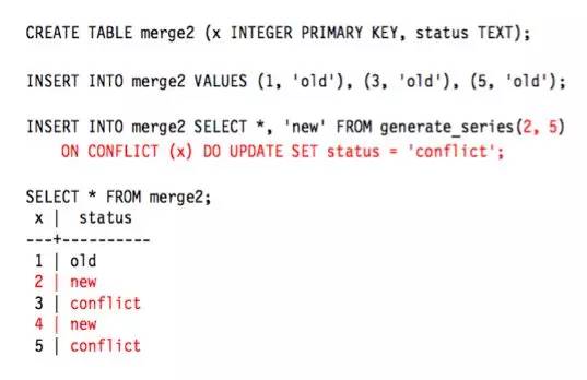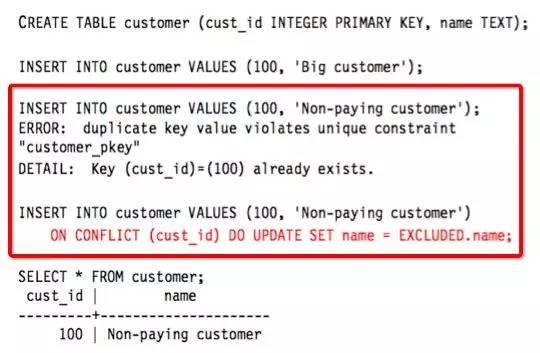 一、Postgres95 介绍 现在被称为 Post与reSQL 的对象-关系型数据库管理系统(有一段时间被称为 Postgres95)是从伯克利写的 POSTGRES 软件包发展而来的。PostgreSQL 被誉为是世界上可以获得的最先进的开放源码的数据库系统, 几乎支持所有 SQL 语法(包括子查询,事务和用户定义类型和函数)。 提供多版本并行控制, 并且支持多程开发语言,包括 : (1)Java (2).Net (3)PHP (4)C (5)C++ (6)node.js (7)perl (8)tcl (9)Python 等 PostgreSQL 原于 Ingres,由 2014 年图灵奖得主 Michael Stonebraker 主导开发。Michael Stonebraker早在 1970 年代前期 就在 Edgar Codd 的关系数据库论文启发下,组织伯克利的师生,开始开发最早的两个关系数据库之一 Ingres(另一个是 IBM System R)。 Ingres 的基础上后来发展出 Sybase 与 SQL Server 两大主流数据库。Ingres 在关系数据库的查询语言设计、存取方法、查询处理、并发控制和查询重写等技术上都有重大贡献。 1980 年代他又开发了 POSTGRES 项目,目的是在关系数据库之上增加对更复杂的数据类型的支持,包括对象、地理数据、时间序列数据等。后来这个系统演变为开源的 PostgreSQL,Greenplum、Aster Data、Netezza 和 Stonebraker自己创办的 Ilustra(后被Informix收购)等多个商业公司和开源的产品都是基于 PostgreSQL 开发的。 在 1994 年,Andrew Yu 与 Jolly Chen 两位华人 向 POSTGRES 中增加了 SQL 语言的解释器,命名为 Postgres95,后重新命名为 PostgreSQL。 二、PostgresSQL 版本发展历史 1997 年,正式改名为 PostgreSQL 6.x,主要功能发展:unique indexes、Multi-column indexes、sequences、money data type (当前美国多家银行使用)、GEQO (GEnetic Query Optimizer 基因查询优化算法)、支持 JDBC、支持触发器、支持存储过程语言 PL/pgSQL、支持视图、实现 MVCC 多版本控制、临时表 我们可以年到在上世纪 90 年代,PostgreSQL 已经有十分完善的现代关系型数据库功能。反观 MySQL,到 2005 年才比较完善地提供以上功能,当然,也由于借助 LAMP 架构 MySQL 成为了开源数据库占有率第一的数据库。但是在很多核心系统中,PostgreSQL 上世纪 90 年代到 20 世纪初企业级,甚至军方核心系统中几乎唯一使用的开源数据库。比较重点的系统包括:NASA、美国海空军、银行等。 2000年,PostgreSQL 7.x,主要功能发展:对 Foreign keys 外键的支持、支持多表 JOIN、实现 WAL 日志系统(类似 redo log)、Outer JOINS、支持国际化语言、支持用户 Schema 隔离。 这一版本主要对数据库功能进行增强,主要表现在对多表处理,及容错性方面。 2005年,PostgreSQL 8.x,主要功能发展:支持 Windows 平台、Savepoints、表空间管理、基于任意时间点的恢复、2 阶段提交、表分区、全文检索、XML、窗口函数、递归查询。 在2005年PostgreSQL才支持Windows平台因此大家不要再问题我为什么PostgreSQL被我说得特备NB,但在中国没有火。都想想自己10年前在用什么系统吧! 2010 年,PostgreSQL 9.x,这是一个让中国用户直正了解并使用 PostgreSQL 的开始。而实际上,同年 Uber、Instagram、Skype 等国外知名互联网公司大量使用 PostgreSQL,特别是 Uber 通过 PostGIS 的地理信息功能,在后续几年中横扫了 O2O 打车市场。 (1)PostgreSQL 9.0:支持64位Windows系统、异步流数据复制、Hot Standby(相当于Active DataGuard)。 (2)PostgreSQL 9.1:支持同步数据复制、unlogged tabels、serializable snapshot isolation、FDW 外部表。 此版本后,PostgreSQL 开始得到中国多个行业用户的关注,开始有应用于电信、保险、制造业等边缘系统。 (1)ostgreSQL 9.2:级联数据复制、index-only scans、JSON 数据类型、空间分区 GiST 索引(SP-GiST) (2)ostgreSQL 9.3:数据校对 checksums、丰富 JSON 函数及操作符、并行 pg_dump 备份、物化视图 (3)ostgreSQL 9.4:JSONB 数据类型(高性能可索引)、可在线刷新物化视图、支持Linux大页操作、支持数据预热 经过 9.x 版本多年的持续更新,我们可以看到,PostgreSQL 在企业功能上已经与商业数据库没有太大差距。同时 JSON 的加入,为很多传统企业抹平了进入移动互联网业务的道路,同时在很多特殊场景下无需再通过“宽表”进行数据处理。物化视图、Linux 大页面操作、数据预热等功能为进一步实现 OLAP 功能奠定了基础。 三、PostgresSQL 9.5 的亮眼特性 1.SERT INSERT … ON CONFLICT, also known as “UPSERT” 若你有用过 Oracle 的 Megre 功能,我相信不用我多说你都知道这是有多么的方便。以下是一些 DEMO,如图1所示 图1 可以看到由于x是主键因此数第 2 次 INSER INTO 无法插入成功。如图2所示 图2 可以看到 INSERT 失败后,进行 UPDATE。我们可以将例子写得更加复杂一些,如下所示: 图3 上 generate_eries(1,5) 在 PostgreSQL 的意思是生成 1 到 5 的序列,由于1、3、5 数据已经存在,因此无法写入。而通过以下方式即可写入数据,如图4所示; 图4 想做更深入的操作?我们再看一个,如图5所示 图5 以上例子我们可以方便地实现数据库中对于错误中已存在数据的灵活处理,在复杂业务场景十分实用。 如:在进行 SQL 语句编写时,我们经常会遇到大量的同时进行 Insert/Update 的语句 ,也就是说当存在记录时,就更新 (Update),不存在数据时,就插入 (Insert)。 2.ock-Range Indexes (BRIN) 通过以图6的例子我们可以更好地理解这个新的 Index,如图6所示: 图6 BRIN(Block Range Index):保存数据块的值的摘要信息,如存储某一组块里面所有记录中的最大最小值,与 Exadata 的 Storage Index 相似。 通过 BRIN 我们可以让 Index 大小指数级缩小,当然不恰当的使用也会影响性能,以下是一个 DEMO,如图7所示 图