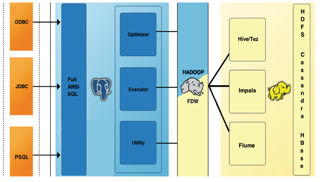 现在让大家看看那些基于PostgreSQL让人咋舌的奇特功能。 1、异地多主节点,异步数据表复制 如图1所示: 图1 多数据中心多写多活不是梦,当然这是异步的,要我们自己处理数据冲突时的处理流程。 2、基于MPP架构的OLAP数据仓库解决方案Greenplum 如图2所示: 图2 你想要50台还是100台服务器来做SQL分析? 北京的朋友,Greenplum今天在北京开技术沙龙,PostgreSQL大拿们全都在北京,你们知道这个消息吗? 3、pg_shard或基于FDW的数据分片技术 如图3所示: 图3 你的一个数据库里,其中有一张表存放在另外512台服务器,随便坏个三两台服务器数据没有影响。但是我们要注意,这不是HDFS,这不是Hadoop,这更不是mysql,这是PostgreSQL。 4、完全符合OpenGIS标准的PostGIS地址信息管理数据库组件 如图4所示: 图4 这就是3D!是的PostGIS支持海拔处理!还有,地球是椭圆型的,且还是不规则的椭圆型,你知道吗?反正PostGIS知道。 中国有很多系统都在用PostGIS,是的,订个餐可能是PostGIS;叫个车可能是PostGIS;查个公交可能是PostGIS;导航一下可能是PostGIS;想和你亲爱的去一下旅行也是PostGIS!! 你能想到的O2O,只要他们想做精准备一点,又想节约成本都在用PostGIS。 5、基于GPU实现高性能SQL透明查询:PG-Strom 如图5所示: 图5 当你发现你家用来打游戏的显卡可以用来跑SQL,黑科技。 2015年德哥用PostgreSQL通过SQL画了个米奇老鼠,我期待他2016年用PG-Strom + PostGIS画个3D的。 6、基于视图技术的关系型数据库流式计算:PipelineDB 如图6所示: 图6 最近股票不是很景气,大家的伤心事。 举例,如果你是国家电网或者南方电网的技术人员,现在要求每1分钟获取智能电表的数据1次,每个数据1KB,一个中等人口的省份约5000万户。 (1)问题:每秒数据量是多少?每秒IOPS要求多少?每月数据量是多少? (2)问题:如果用的是流式计算,在内存计算完业务结果再写盘呢? 7、超级数据SQL接口:FDW 如图7所示: 图7 FDW是个万能插口,还可以双向操作对Oracle、SQLServer、MySQL、MongoDB、Redis、Excel、CVS等数据库或文件。小心用电安全,FDW是万能的接口,大象的小屁屁再大也是有限的,不要爆菊花! 下一条: PostgreSQL的流式实时统计应用