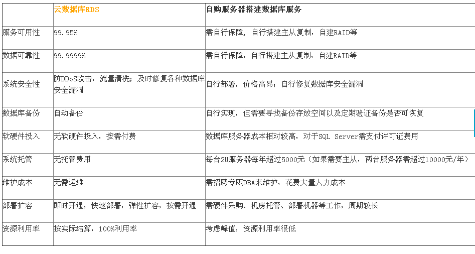 自建数据库与云数据库RDS对比