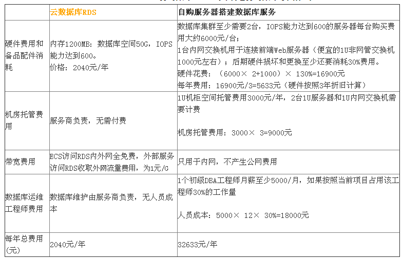 二、 云数据库RDS与自建数据库价格对比,如下图: