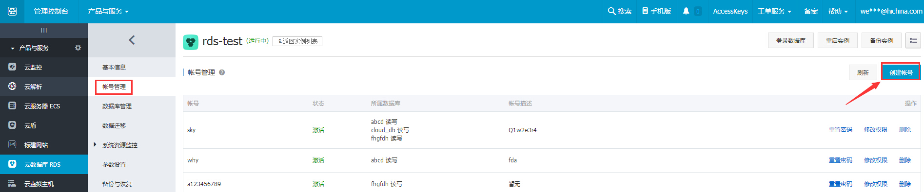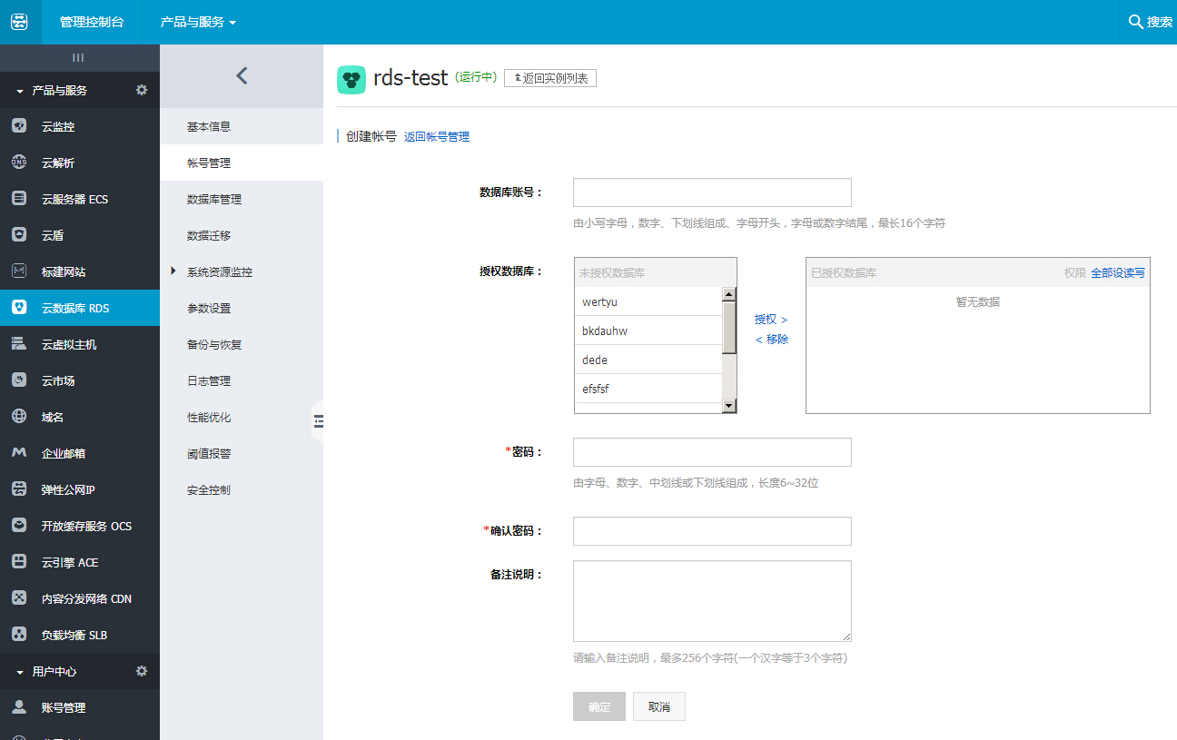 RDS数据库帐号的创建方法