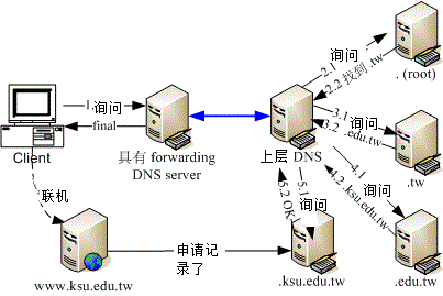 关于DNS的基本介绍 一、DNS概述 DNS,域名系统(英文:Domain Name System,DNS)是因特网的一项服务,它作为将域名和IP地址相互映射的一个分布式数据库,能够使人更方便的访问互联网。 DNS 使用TCP和UDP端口53。当前,对于每一级域名长度的限制是63个字符,域名总长度则不能超过253个字符。 二、基本介绍 DNS是计算机域名系统或域名解析服务器(Domain Name System 或Domain Name Service) 的缩写,它是由解析器以及域名服务器组成的。 域名服务器是指保存有该网络中所有主机的域名和对应IP地址,并具有将域名转换为IP地址功能的服务器。 DNS使用TCP与UDP端口号都是53,主要使用UDP,服务器之间备份使用TCP。 在IPV4中IP是由32位二进制数组成的,将这 32位二进制数分成4组每组8个二进制数,将这8个二进制数转化成十进制数,就是我们看到的IP地址,其范围是在0~255之间。因为,8个二进制数转化 为十进制数的最大范围就是0~255。已开始试行、将来必将代替IPv4的IPV6中,将以128位二进制数表示一个IP地址。 1、DNS的发展 DNS 最早于1983年由保罗·莫卡派乔斯(Paul Mockapetris)发明;原始的技术规范在882号因特网标准草案(RFC 882)中发布。1987年发布的第1034和1035号草案修正了DNS技术规范,并废除了之前的第882和883号草案。在此之后对因特网标准草案的 修改基本上没有涉及到DNS技术规范部分的改动。 2、DNS的 域名结构 通常 Internet 主机域名的一般结构为:主机名.三级域名.二级域名.顶级域名。 Internet 的顶级域名由 Internet网络协会域名注册查询负责网络地址分配的委员会进行登记和管理,它还为 Internet的每一台主机分配唯一的 IP 地址。全世界现有三个大的网络信息中心: 位于美国的 Inter-NIC,负责美国及其他地区; 位于荷兰的RIPE-NIC,负责欧洲地区;位于日本的APNIC ,负责亚太地区。 3、DNS解析器 解析器,或另一台DNS服务器递归代表的情况下,域名解析器,协商使用递归服务,使用查询头位。 解决通常需要遍历多个名称服务器,找到所需要的信息。然而,一些解析器的功能更简单地只用一个名称服务器进行通信。这些简单的解析器依赖于一个递归名称服务器(称为“存根解析器”),为他们寻找信息的执行工作。 4、位置 提 供DNS服务的是安装了DNS服务器端软件的计算机。服务器端软件既可以是基于类linux操作系统,也可以是基于Windows操作系统的。装好DNS 服务器软件后,您就可以在您指定的位置创建区域文件了,所谓区域文件就是包含了此域中名字到IP地址解析记录的一个文件,如文件的内容可能是这样的: primary name server = dns2(主服务器的主机名是 ) serial = 2913 (当前序列号是2913。这个序列号的作用是当辅域名服务器来copy这个文件的时候,如果号码增加了就copy) refresh = 10800 (3 hours) (辅域名服务器每隔3小时查询一个主服务器) retry = 3600 (1 hour) (当辅域名服务试图在主服务器上查询更新时,而连接失败了,辅域名服务器每隔1小时访问主域名服务器) expire = 604800 (7 days) (辅域名服务器在向主服务更新失败后,7天后删除中的记录。) default TTL = 3600 (1 hour) (缓存服务器保存记录的时间是1小时。也就是告诉缓存服务器保存域的解析记录为1小时) 5、服务器搭建 无论您是通过linux还是windows搭建dns服务器,原理都是差不多的。 您可以把DNS服务器配置成以下3类之一: (1)、缓存DNS服务器。 (2)、主DNS服务器。 (3)、辅DNS服务器。 6、DNS服务器 工作原理如下图所示: 现在只要在域名注册商或服务商注册域名,DNS都是免费。 (1)、条件:要更改为合法的DNS。 如果要查询DNS是不是合法的DNS,请点击:DNS查询界面 输入DNS服务器的名称或者IP地址,选中第三个选项Nameserver,查询如果查询出有DNS注册的信息,比如,注册商,名称对应的IP地址,则这个DNS是合法的。 (2)、修改方法:通过具有条件的公司注册的国际域名变更DNS:用户可通过和提供服务的该公司进行协商(大致步骤为:提出申请并提交相关材料后该业务公司会在48小时左右完成变更)。 国际英文域名、国内英文域名可以修改DNS,这项服务是免费的。 使用免费的DNS 国内外有不少提供免费DNS服务的提供商,其中国内著名的有IIDNS,DNSPod和OpenDns等。 7、解析故障 简单介绍 通常说来,像我们访问的地址都叫做域名,而众所周知网络中的任何一个主机都是IP地址来标识的,也就是说只有知道了这个站点的IP地址才能够成功实现访问操作。 1、DNS服务器概念:不过由于IP地址信息不容易记忆,所以网络中出现了域名这个名字,在访问时我们只需要输入这个好记忆的域名就可以了,网络中会存在着自动将相应的域名解析成IP 地址的服务器,这就是DNS服务器。 2、DNS解析故障概念:能够实现DNS解析功能的机器可以是自己的计算机也可以是网络中的一台计算机,不过当DNS解析出现错误,例如把一个 域名解析成一个错误的IP地址,或者根本不知道某个域名对应的IP地址是什么时,我们就无法通过域名访问相应的站点了,这就是DNS解析故障。 出现DNS解析故障最大的症状就是访问站点对应的IP地址没有问题,然而访问他的域名就会出现错误。 当我们的计算机出现了DNS解析故障后不要着急,解决的方法也很简单。 3、解决办法 按照如下所述步骤操作即可: (1)、查询DNS服务器工作是不是正常: 这时候我们就要看看自己计算机使用的DNS地址是多少了,并且查询他的运行情况。 第1步:通过“开始->运行->输入CMD”后回车进入命令行模式。 