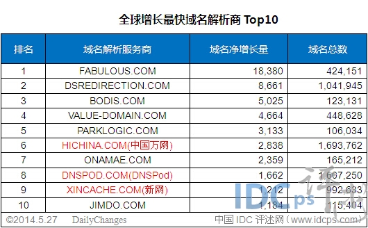 中国万网、51DNS和新网入围全球增长最快域名解析商Top10